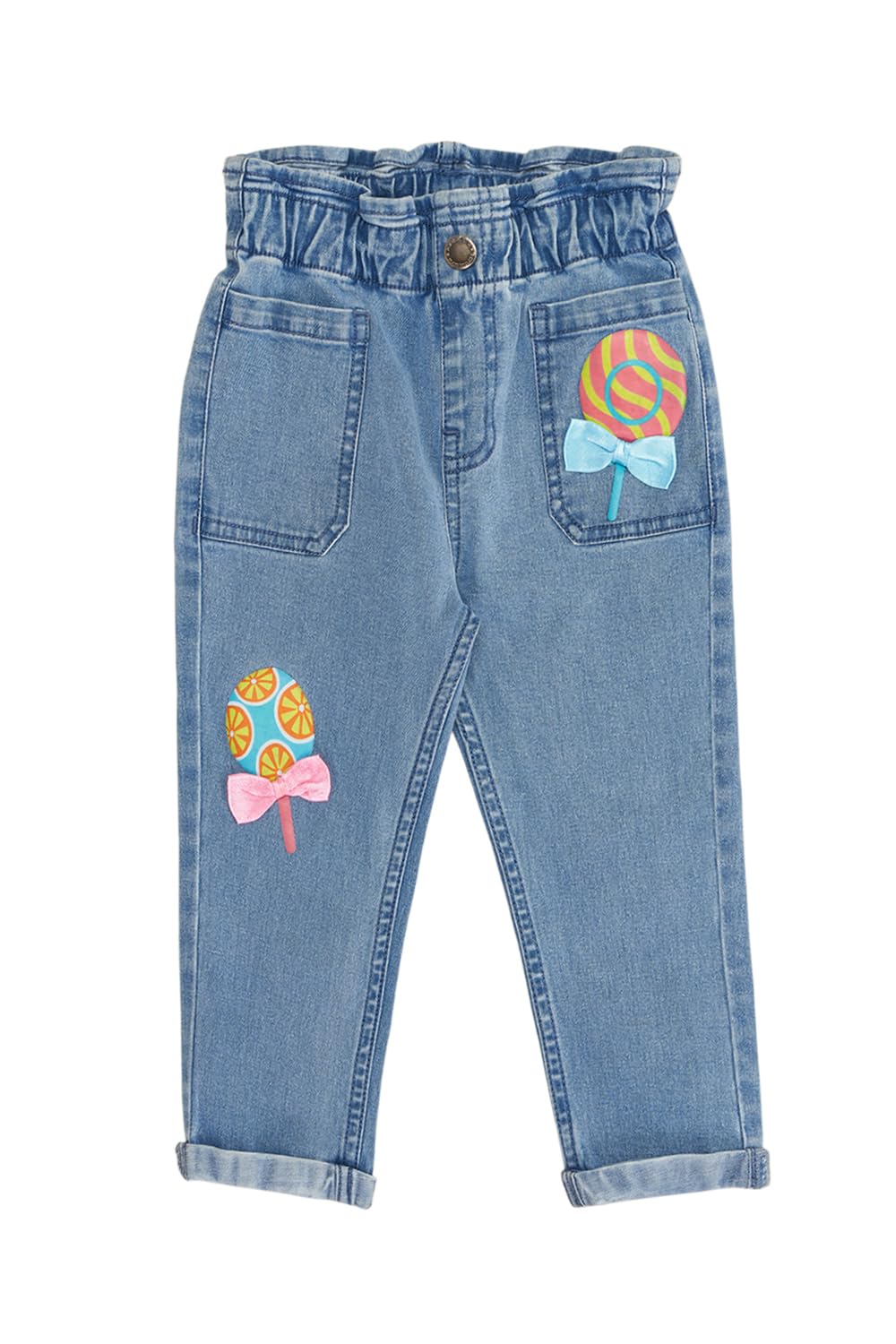 Rugged and stylish, these jeans are a sure-shot purchase! The style has an elasticated paperbag waistband, front pockets and a tapered body with colourful graphics and a stone-washed finish. Made in a sturdy, blended fabric that provides excellent all-day utility and comfort.