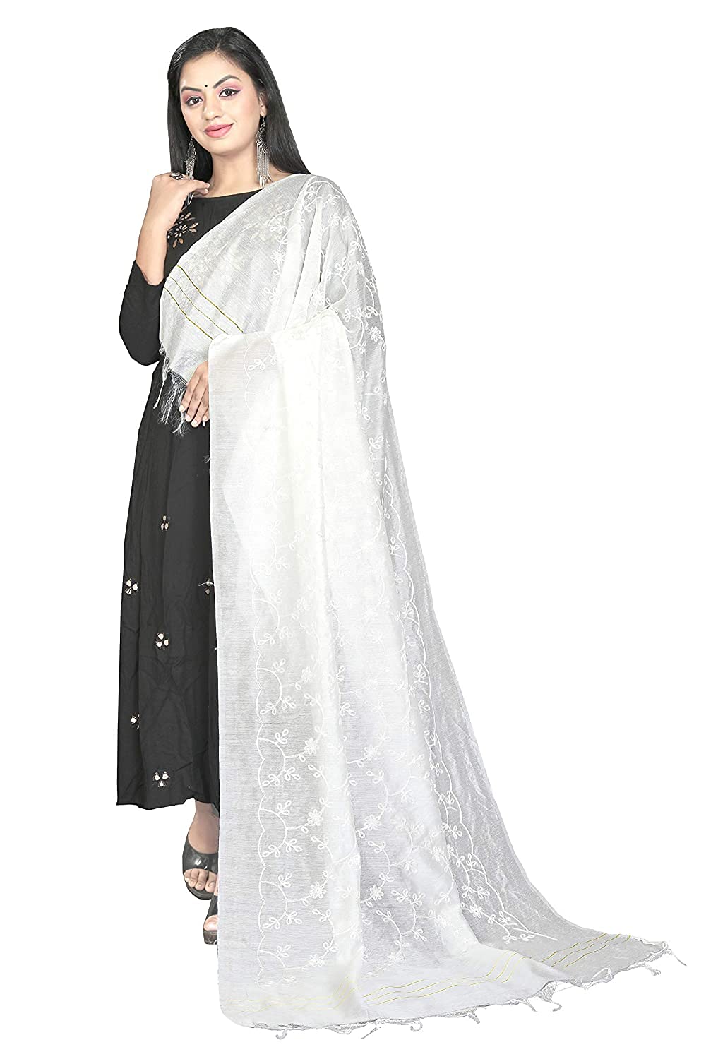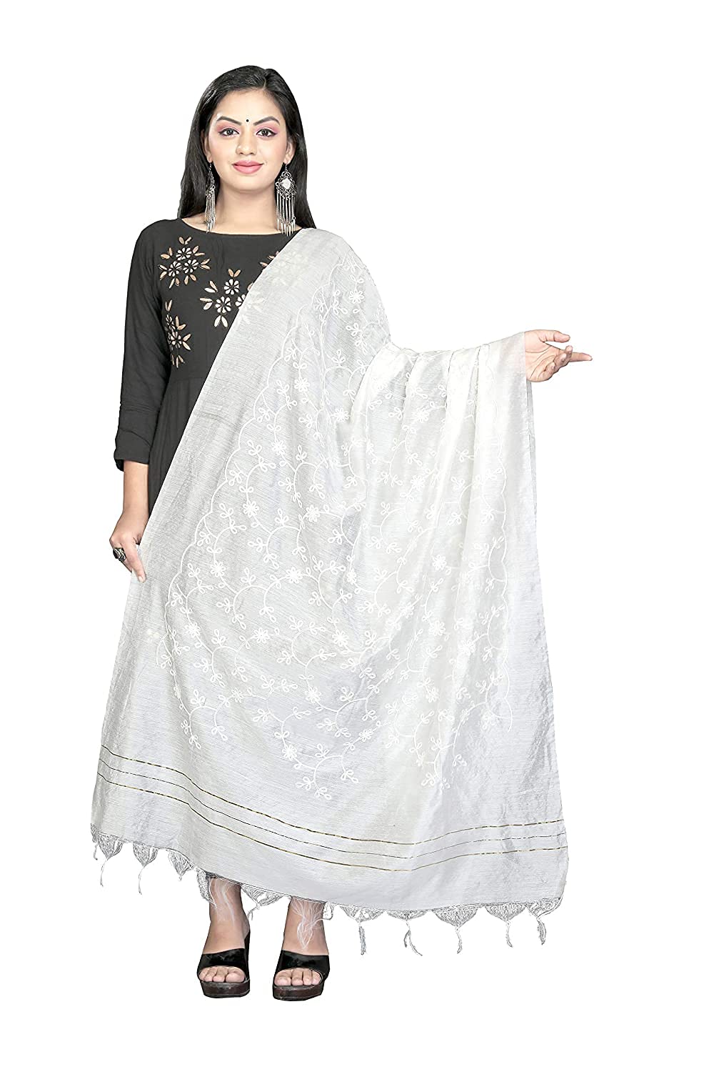 PARABRAHMA Women’s Embroidered Cotton Dupatta (Dupattas_Off-White_2.30meters)