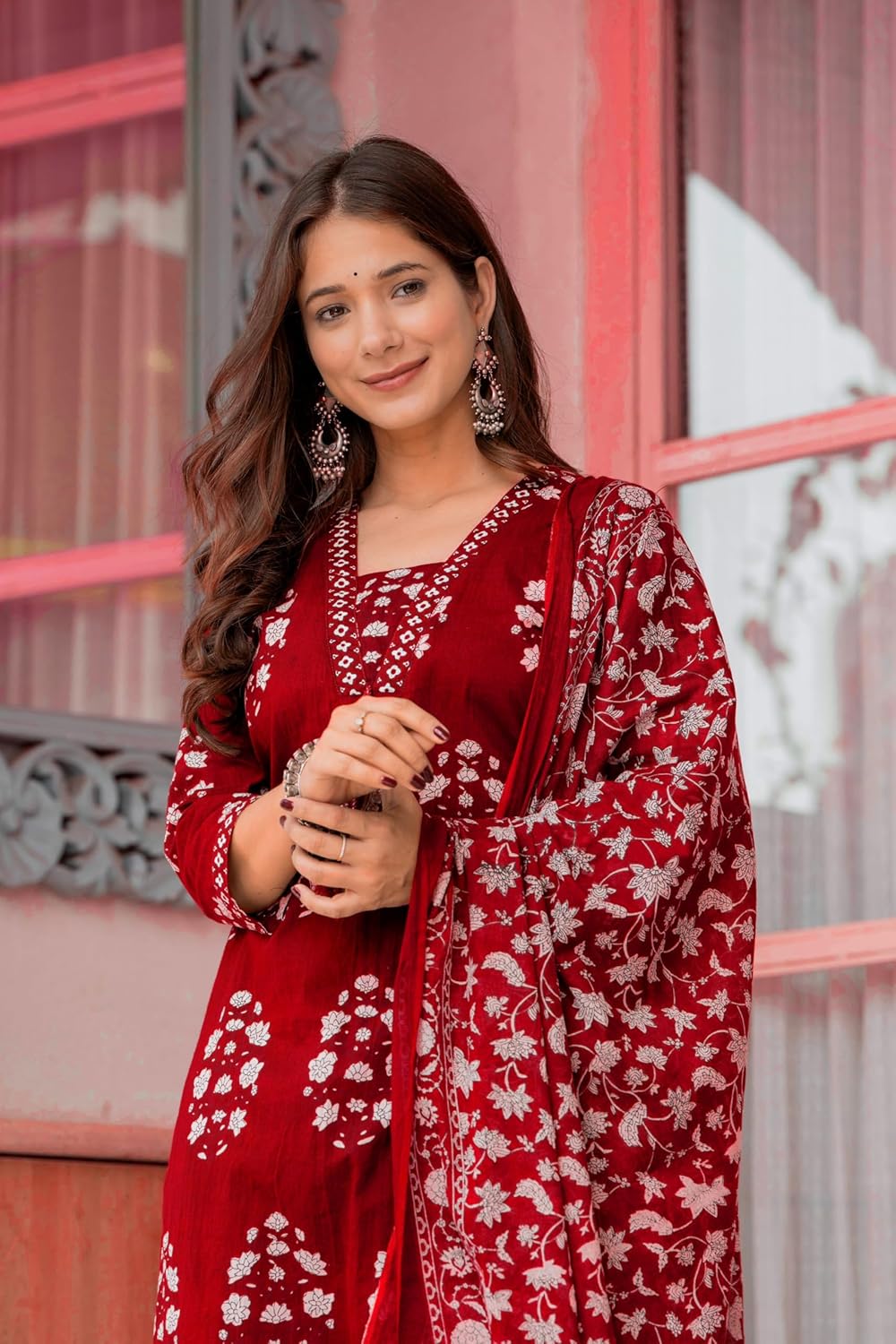 This set includes: 1 Kurta and 1 Pant with Dupatta || Work :- Printed|| Neck Style:-V-Neck Colour Declaration : There might be slight variation in the actual color of the product due to different screen resolutions.
