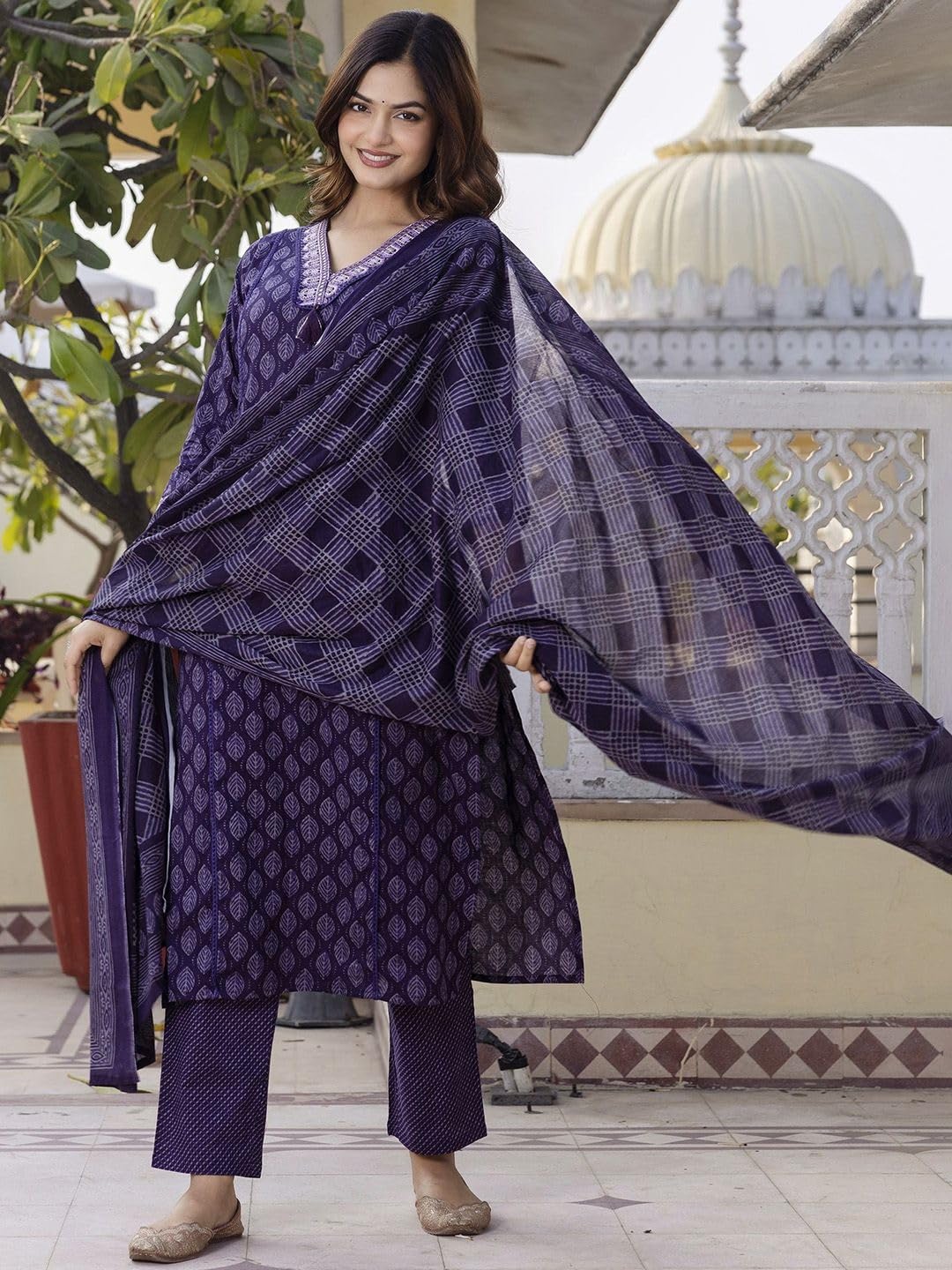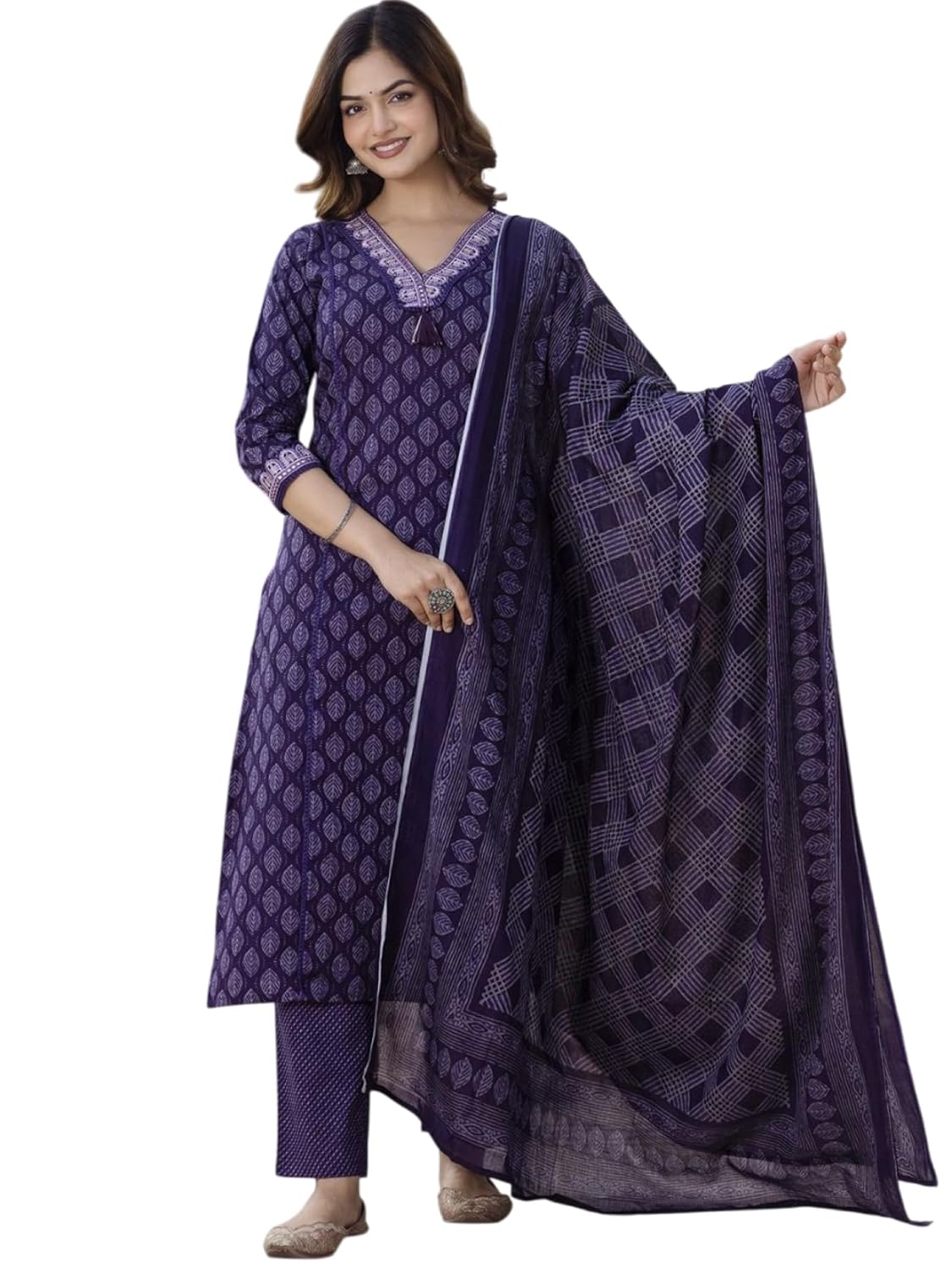 This set includes: 1 Kurta and 1 Pant with Dupatta || Work :- Printed with Handwork || Neck Style:-V- Neck Colour Declaration : There might be slight variation in the actual color of the product due to different screen resolutions.