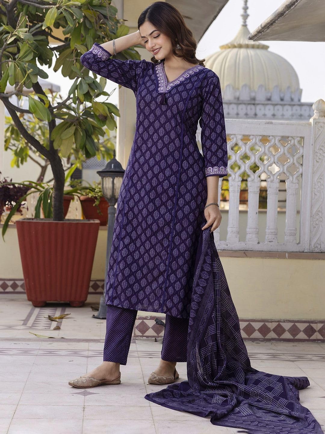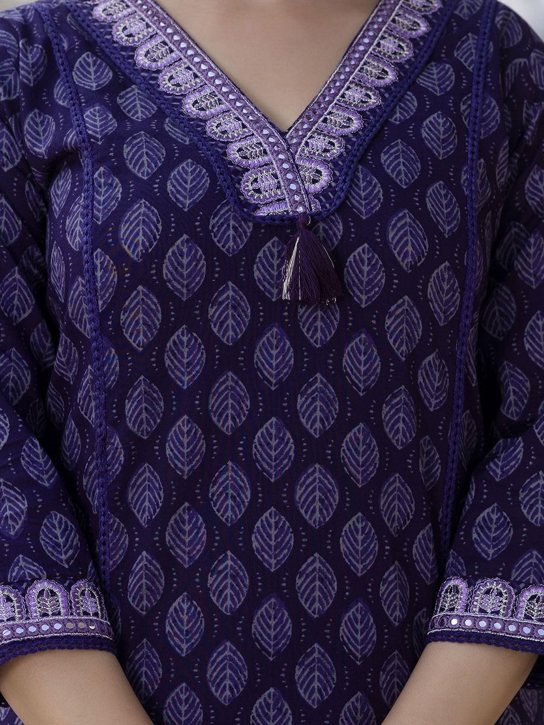 Generic Name : Women’s Pure Cotton Printed With Handwork Kurta with Pants and Dupatta Set