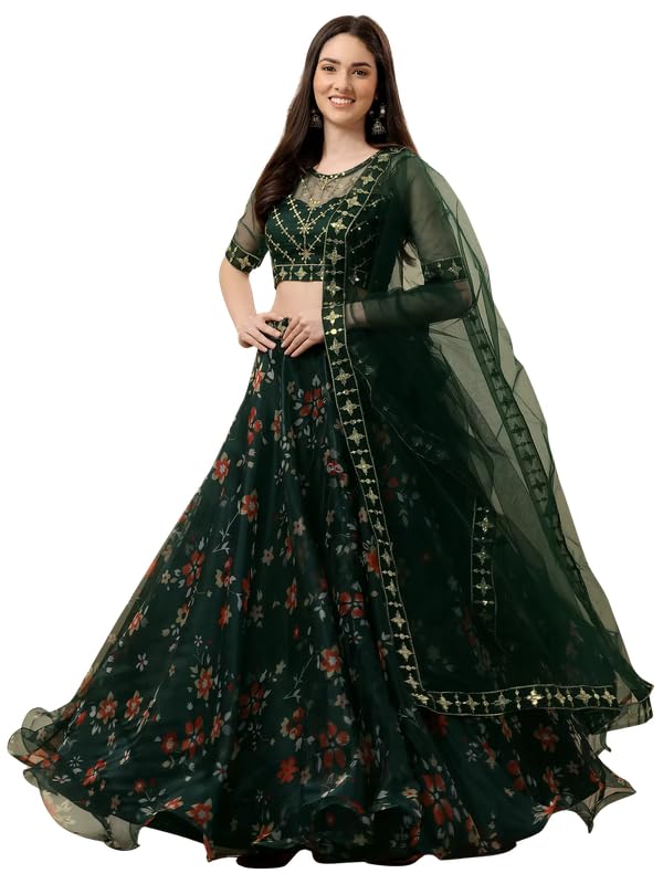 One Of The Best Products From Our Collection. Combination Of Its Color And Fabric Gives It A Rich And Unique Look. Made from quality fabric, this lehenga choli with dupatta set will certainly lend you a graceful look. Featuring an attractive design, this lehenga choli is quite comfortable to wear and easy to drape as well. Look stylish by wearing this lehenga choli and revel in the comfort of the soft blend premium quality fabric. This lehenga choli will surely fetch you compliments for your rich sense of style. it is available in unique beautiful colors and different amazing types new classic Organza Colletion and comes with 1 Semi Stitched Lehenga with 1 Unstitched Blouse Piece and 1 dupatta.