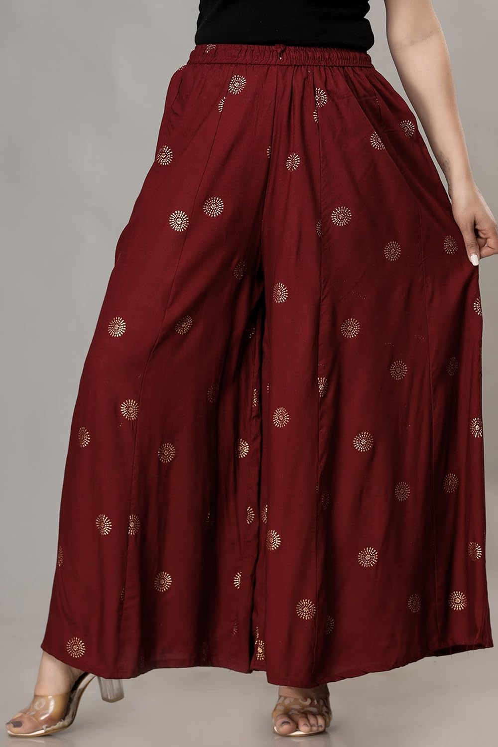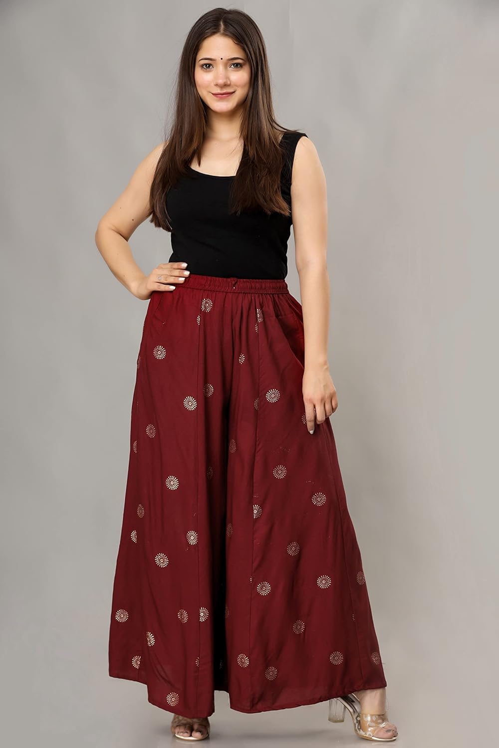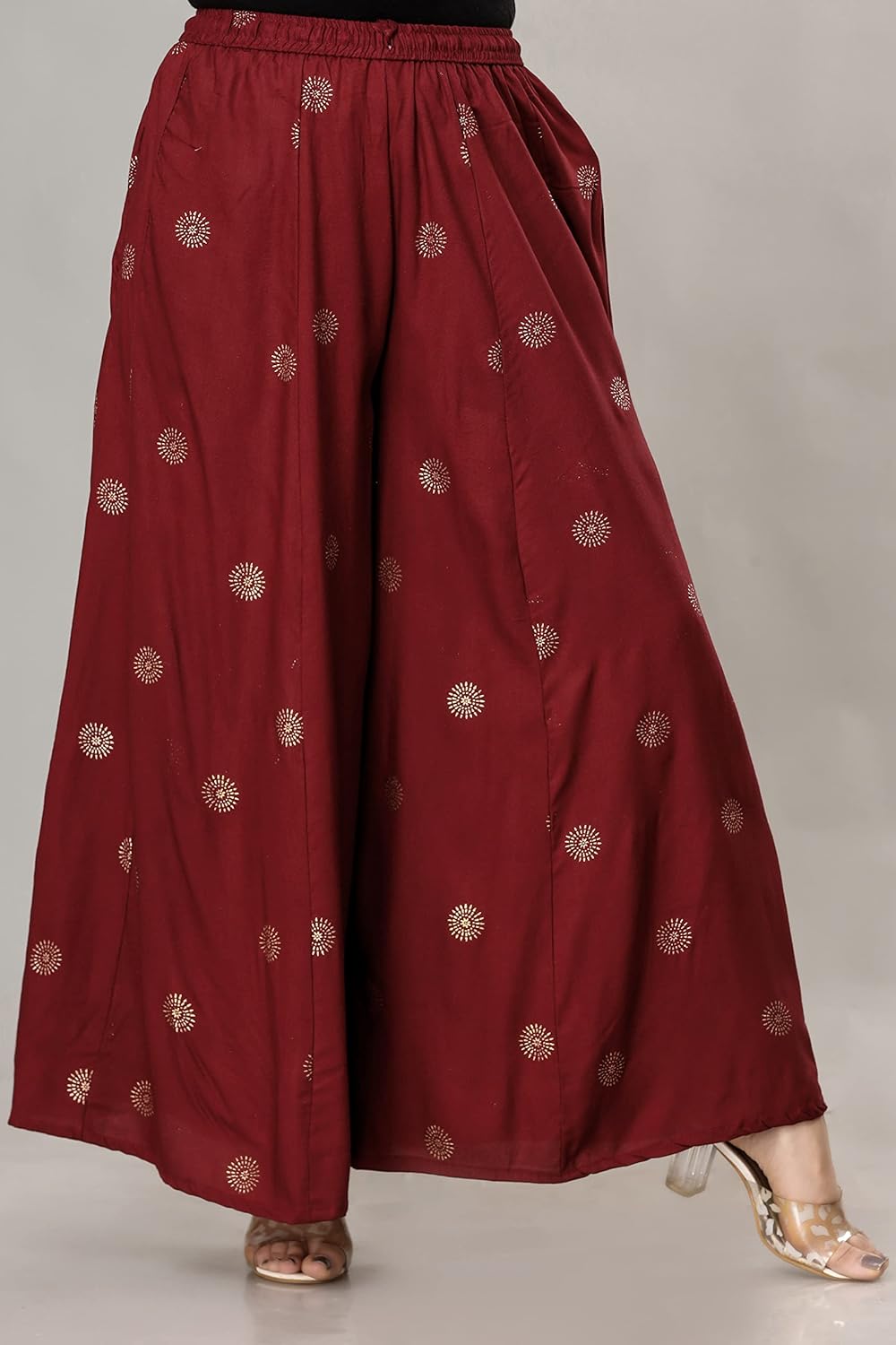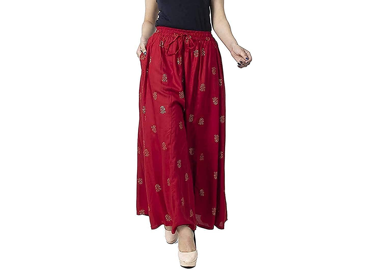 ENDFASHION Rayon Gold Print Skirt Palazzo || Free Size || Rayon Palazzo || Skirt Palazzo || GOLDPRINT Skirt Palazzo || Multicolour