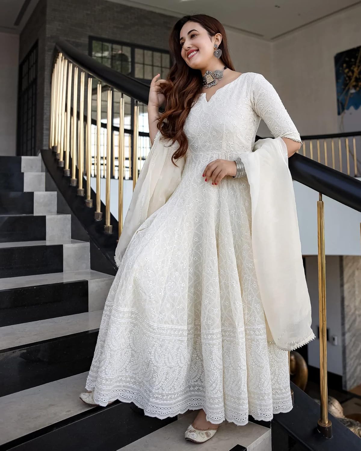 9 reviews for Royal Export Women’s Cotton Blend White Chikankari Anarkali Gown with Dupatta | Dresses for Girls | Pant Not Included ||