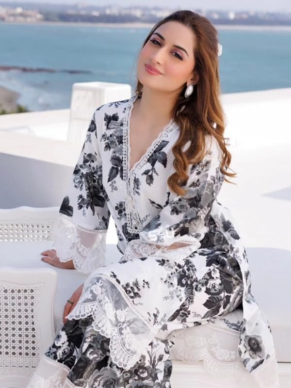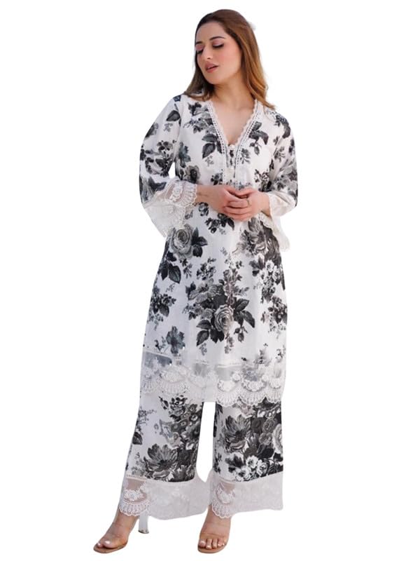 This White & Blackk Colour Kurta Set Is The Fun Attire Of The Moment. Get It On And Style It With A Handbag And Earrings For The Perfect Day Look. Its Casual Wear And Cute – The Essentials For Your Wardrobe