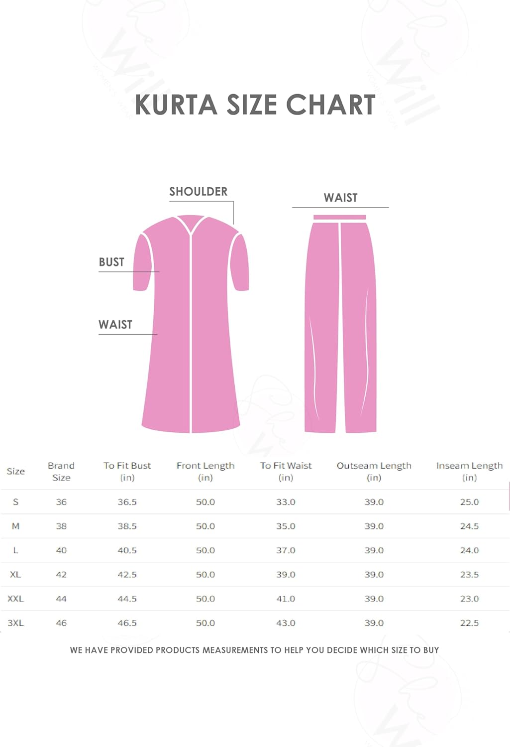 Kurta Length : 50 Inch Bottom Length : 39 Inch Dupatta Length : 2.25 Mtr. Package Contains: 1 Kurta with 1 Bottom and 1 Dupatta