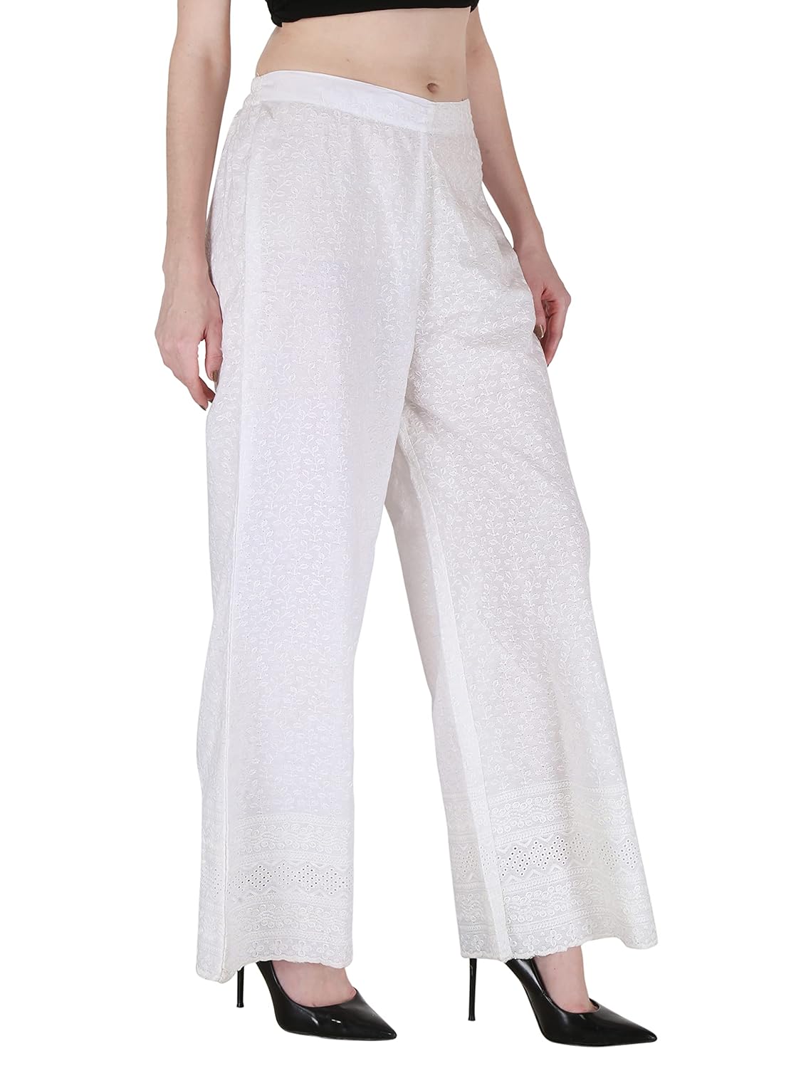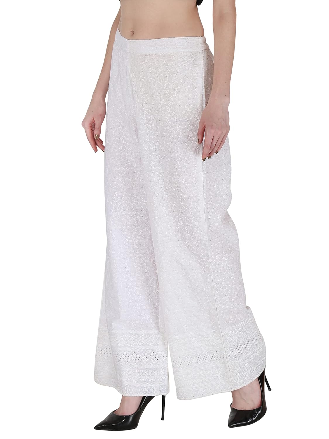The look is Best if you wear with heels. It has a little wide legged bottom that elevates the whole look. I’m 5’2” and weight 73kgs took XL. the Anarkali was a little long so I kinda wanted the pants to show. That’s the reason was looking for a little wide legged palazzo. This is the perfect match.