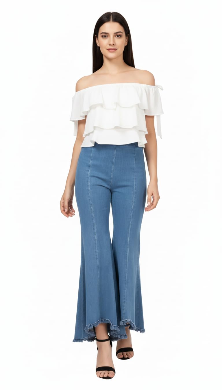 #Stylish #Women #Dark #Blue #Denim #Palazzo #Girls #Pack,