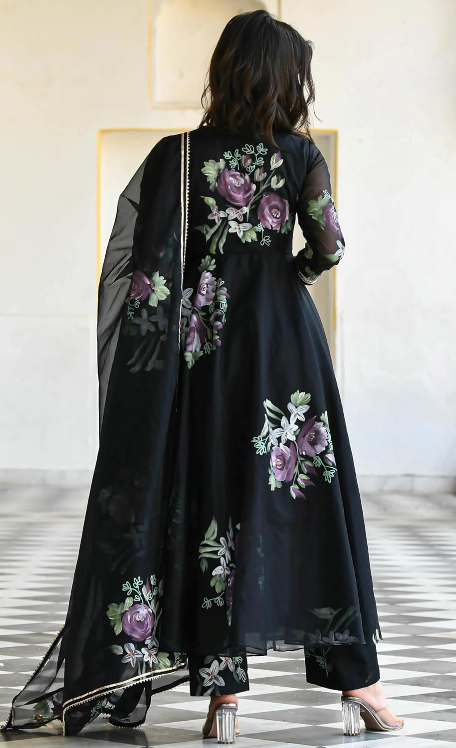 Sugathari Women’s Georgette Anarkali Floral Printed Kurta with Pant & Dupatta