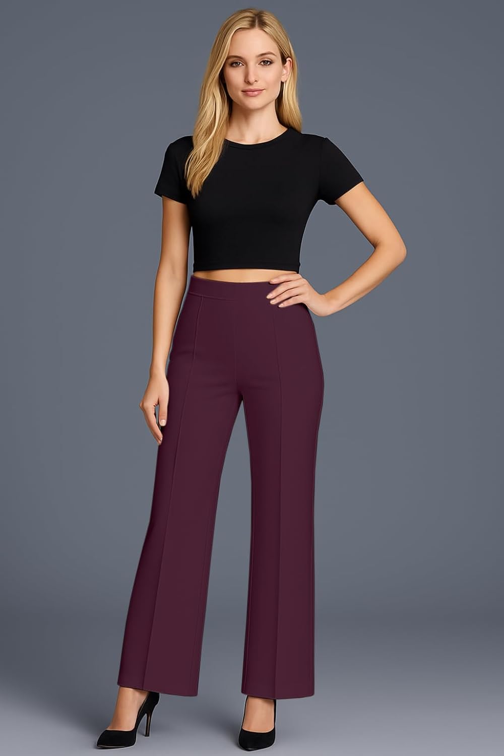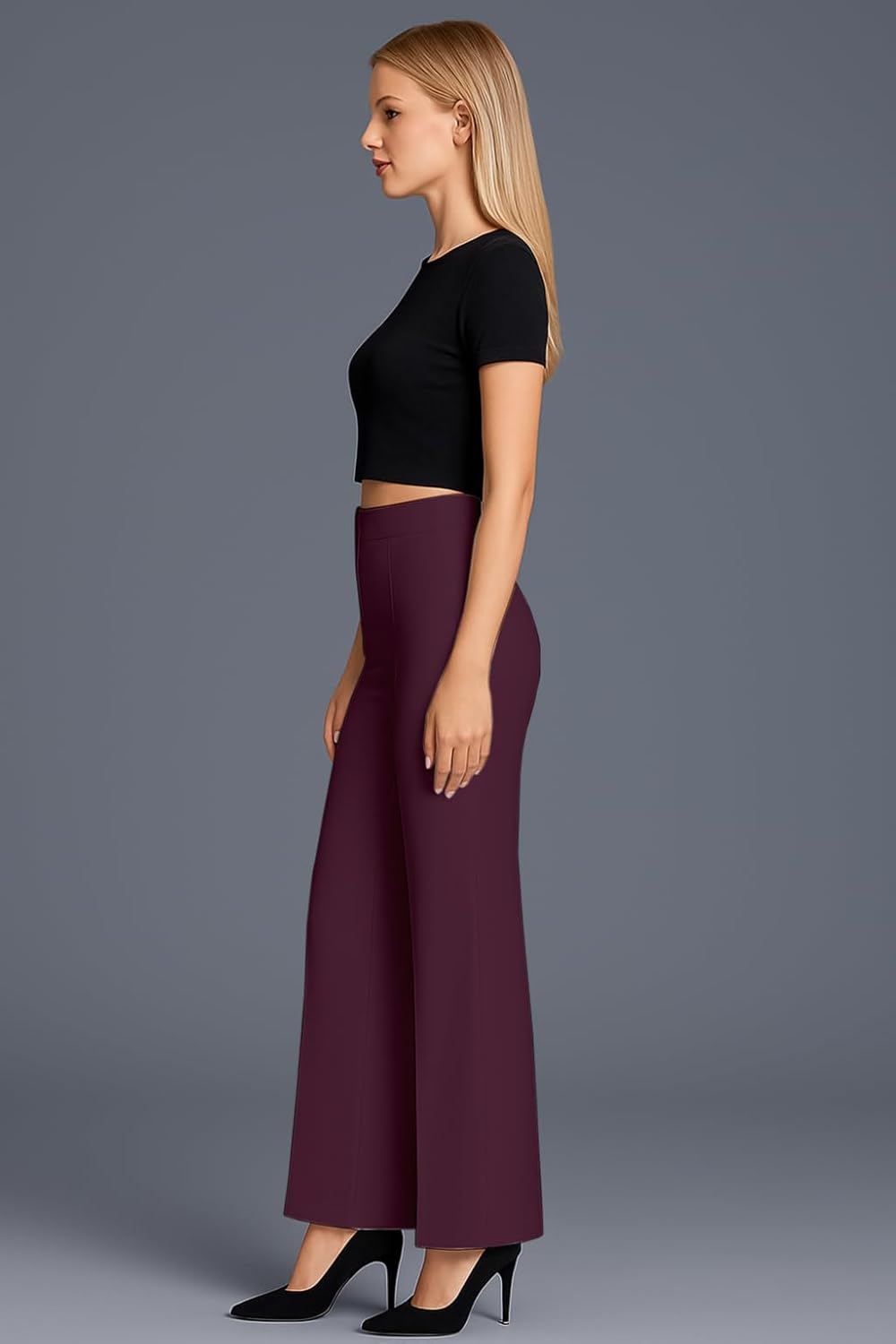 This high-waisted bell bottom pant looks very smart and stylish when worn. The fabric is soft and stretchable, giving comfort all day. It brings a touch of desi charm with a modern style, perfect for daily wear or parties.