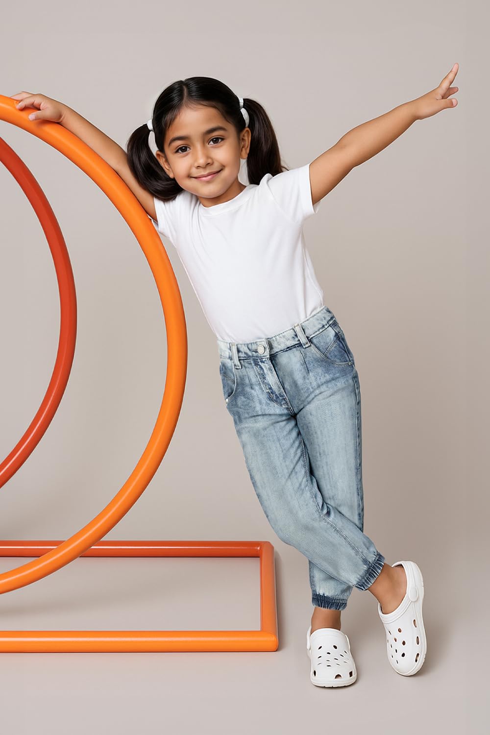 Upgrade your girl’s casual collection with the Tales & Stories Girls Light Blue Joggers, crafted from breathable cotton and treated with a soft towel wash for enhanced comfort. Designed in a clean solid light blue with a subtle faded effect, these joggers offer a relaxed and trendy look. The regular fit and ankle-length design provide both comfort and flexibility for active days. Featuring 4 functional pockets and a secure button closure, they combine practicality with style. Easy to maintain with machine wash compatibility, these joggers are perfect for school, travel, or play.