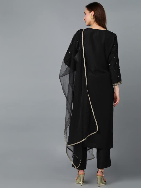Silk Blend Sequinned Embroidered Straight Kurta Pant with Dupatta