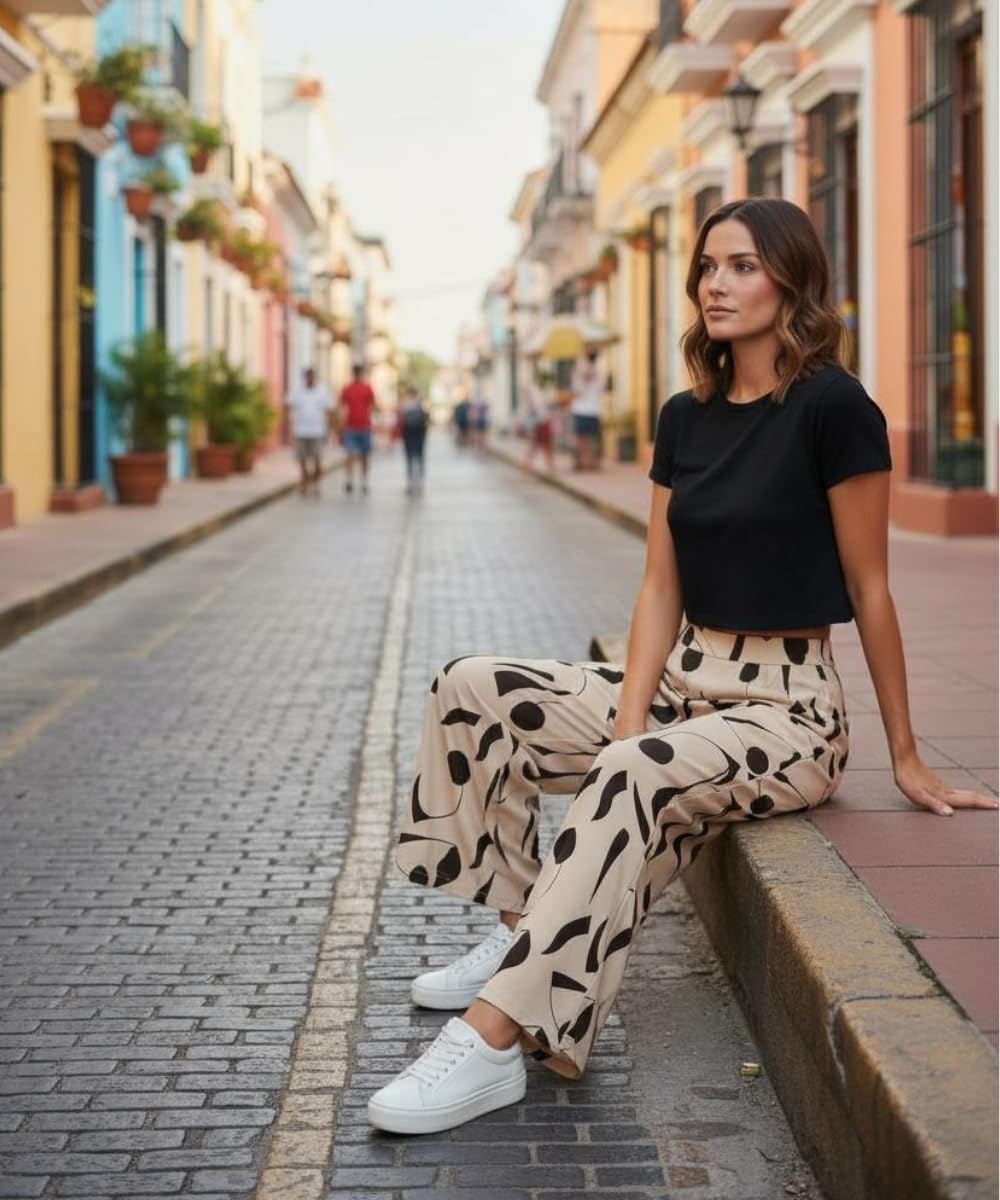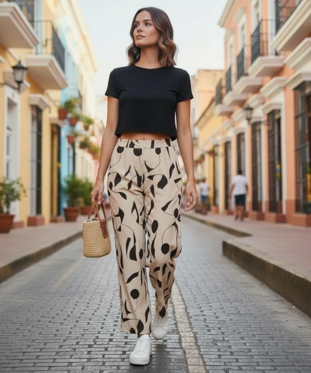 VastraVibes Women’s Printed Palazzo Pants | High Waist Wide Leg | Casual Chic Summer Wear | Stylish Palazzo for Women. Upgrade your everyday wardrobe with the VastraVibes Women’s Printed Palazzo Pants, designed to deliver the perfect balance of style, comfort, and versatility. These trendy palazzo pants feature a modern wide-leg silhouette and an elegant all-over print that adds a chic and fashionable touch to your look. Whether you’re stepping out for a casual day, heading for a vacation, or planning a relaxed evening outing, these palazzos are a must-have staple for women who love effortless fashion. Crafted from soft, breathable, and lightweight fabric, these palazzo pants ensure maximum comfort throughout the day, even in warm and humid weather. The high-waist elastic waistband provides a flattering fit while offering excellent flexibility and ease of movement. Designed to suit all body types, the flowy palazzo fit enhances your natural shape and keeps you comfortable from morning to night. These stylish women’s palazzo pants are extremely versatile and easy to style. Pair them with a crop top, tank top, t-shirt, kurti, or shirt to create multiple looks—from casual street style to boho chic and office casual wear. Complete your outfit with sneakers, flats, or heels for a polished appearance. Ideal for daily wear, college wear, vacation outfits, beach wear, brunch dates, and casual office looks, these palazzos seamlessly fit every occasion. Easy to maintain and durable, the VastraVibes palazzo pants are perfect for women who value both fashion and functionality. Add these trendy, comfortable, and stylish palazzo pants for women to your collection and redefine your everyday style with confidence and elegance.