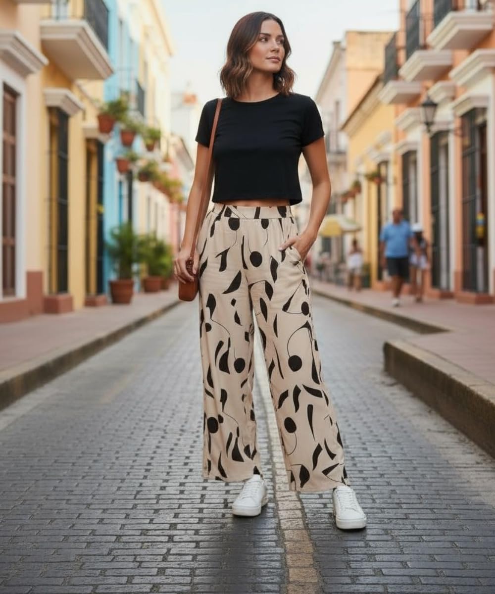 VastraVibes Women’s Printed Palazzo Pants | High Waist Wide Leg | Casual Chic Summer Wear | Stylish Palazzo for Women