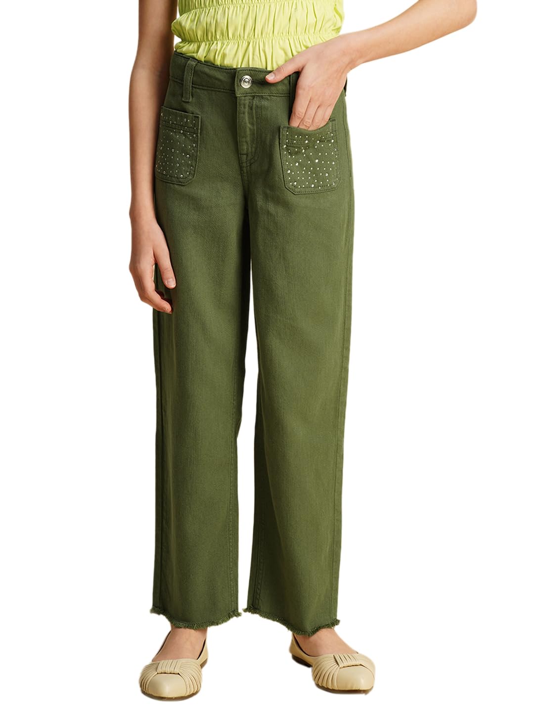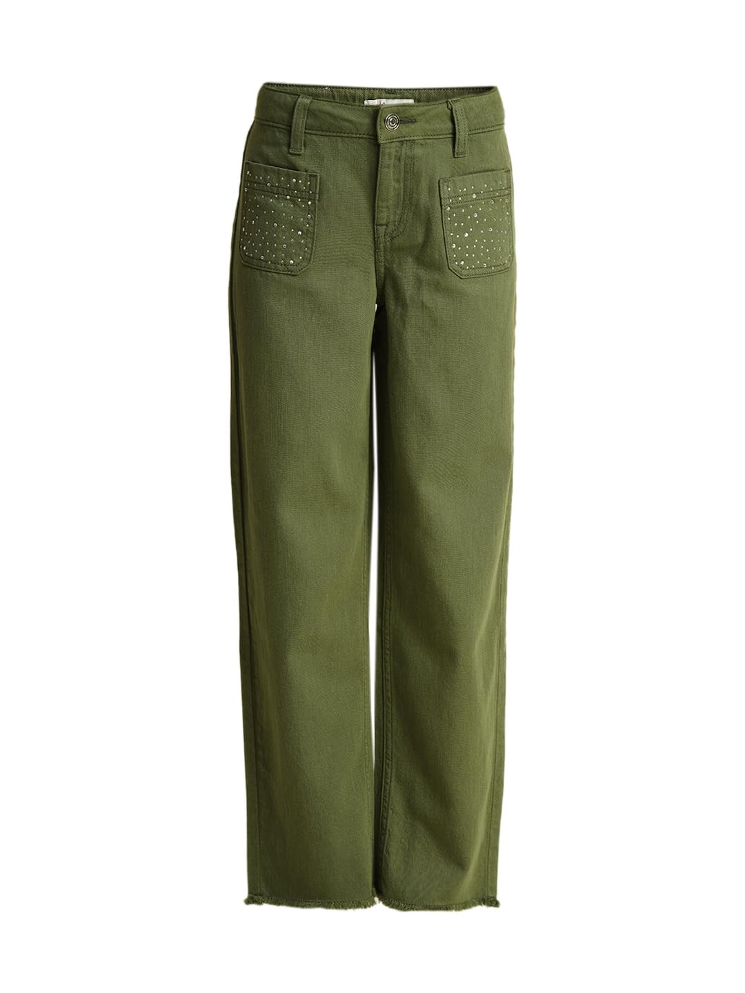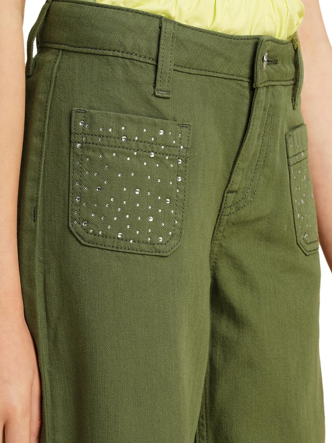 VERO MODA Girls Solid 68%Cotton/Lyocell32% Wide Leg Green Jeans