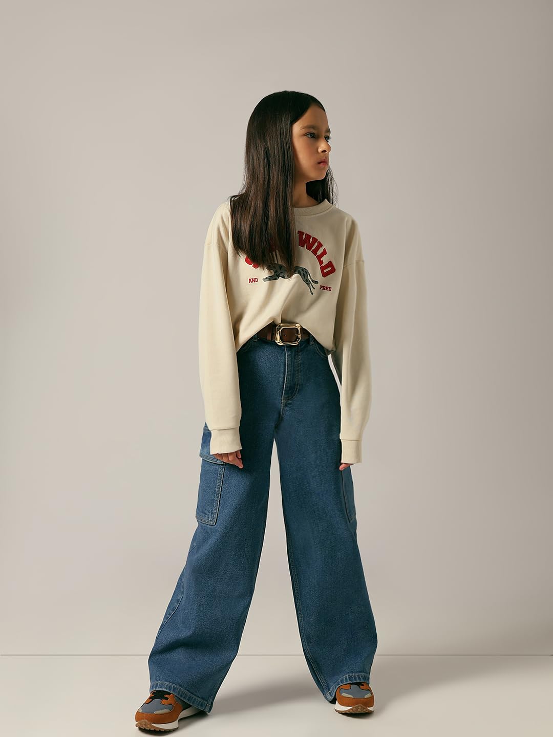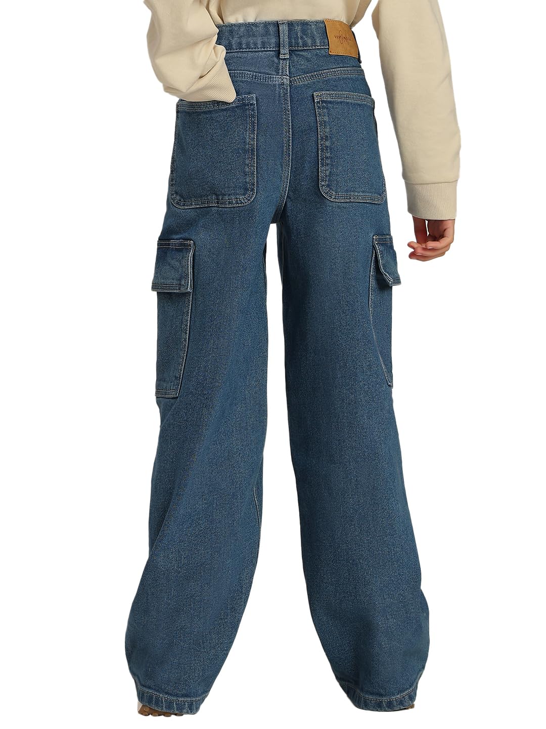 Make everyday adventures stylish with these medium blue cargo jeans! Designed with a relaxed, wide-leg fit and handy side flap pockets, they’re perfect for little ones on the move. Easy to mix and match, they pair effortlessly with tees, tops, or sweaters for a fun, laid-back look.