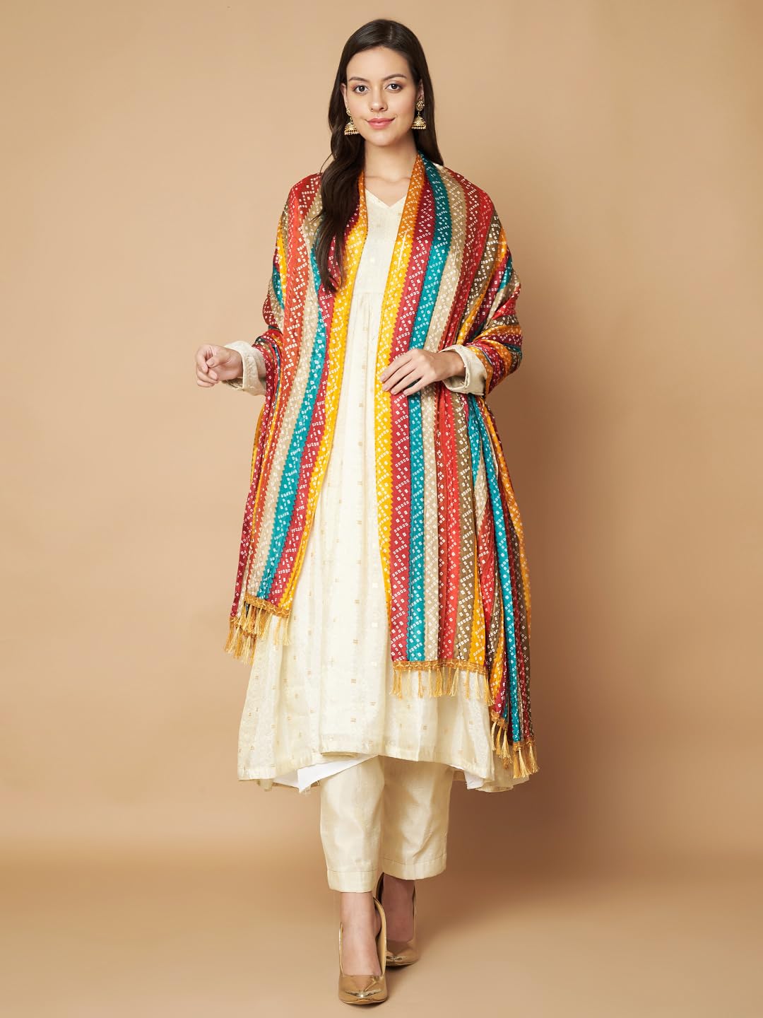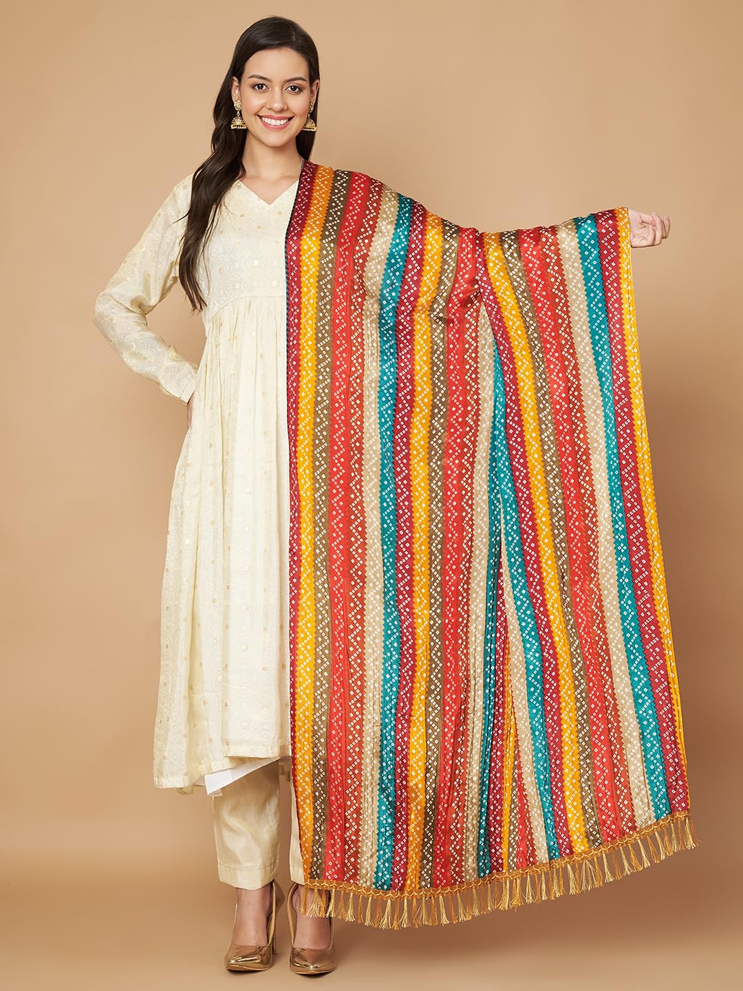 Women’s Art Silk Bandhani Print Dupatta with 2.20 Meters | Women’s cotton printed dupatta with tassels