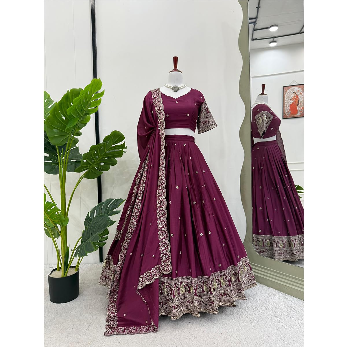 AVIRUDHFAB Exclusive Designer Lehenga Choli Step into the spotlight with AVIRUDHFAB Semi.Stitched Lehenga Choli, designed to capture the perfect blend of traditional craftsmanship and modern flair. Whether you’re gearing up for a wedding, a grand reception, or any festive occasion, this enchanting ensemble promises to elevate your style quotient and create an unforgettable impression. Features That Make You Stand Out Exquisite 3+ Meter Flair Feel like royalty as the lehenga gracefully flows with every step, ensuring you stand out in every crowd. The voluminous flair adds drama and sophistication to your look, perfect for those picture.perfect moments. Luxurious Inner Lining Crafted with Cancan & Canvas, the inner lining adds structure and volume, ensuring your lehenga maintains its graceful silhouette throughout the day. Comfortable and easy to wear.no compromises. Customizable Blouse This set includes an Unstitched Blouse so you can get creative and tailor it to your personal style. Be it intricate embroidery, dazzling sequins, or a sleek and simple design.your blouse, your choice. Versatile Design Perfect for every occasion, be it a wedding, festive gathering, or a chic party. Pair it with traditional jewelry for a bridal ensemble, or opt for minimal accessories for a casual yet elegant look. This Lehenga Choli is as versatile as it is timeless. Why You’ll Love AVIRUDHFAB Lehenga Choli Premium Craftsmanship Made with the finest quality fabric, our lehenga promises unmatched luxury and durability. Flawless Fit Designed for comfort and style, it easy to wear and move in, ensuring you feel as beautiful as you look. For Brides, Bridesmaids & Beyond From weddings to celebrations, this Lehenga Choli is designed to be a showstopper. Elevate Your Wardrobe and add a touch of elegance to every occasion with this exceptional Designer Lehenga Choli by AVIRUDHFAB. Make your presence known and turn heads with a style that as unique as you are.