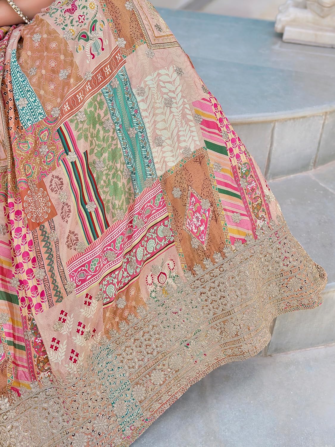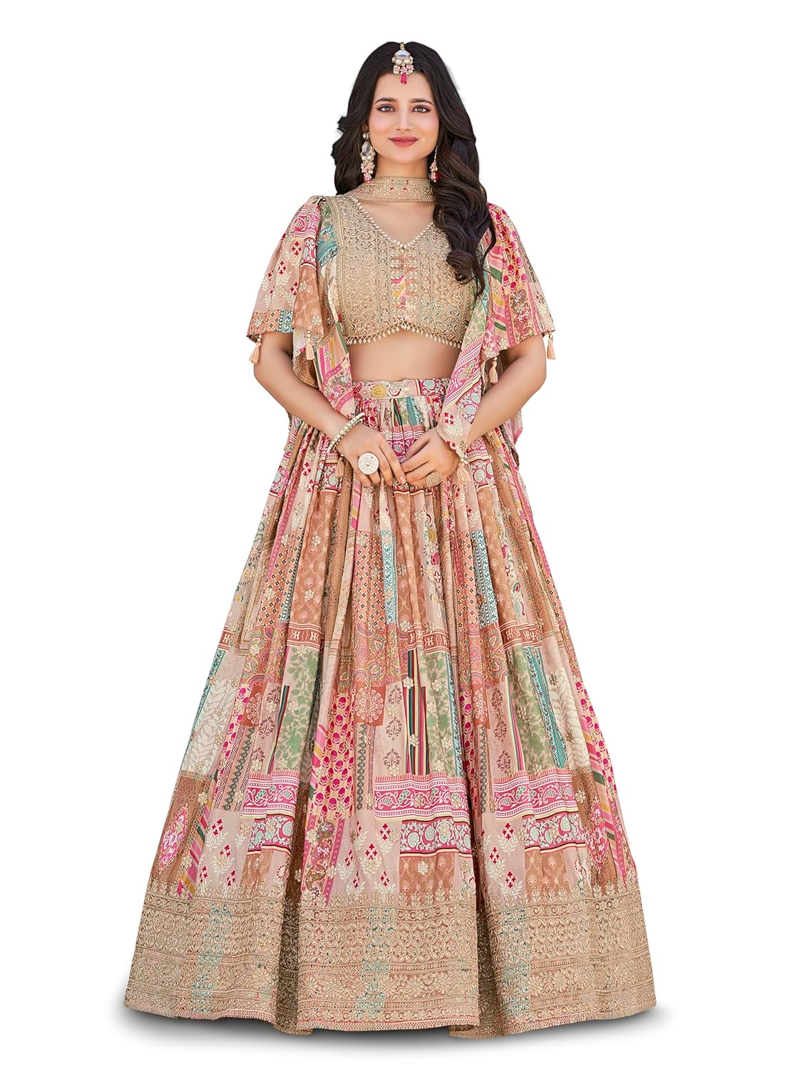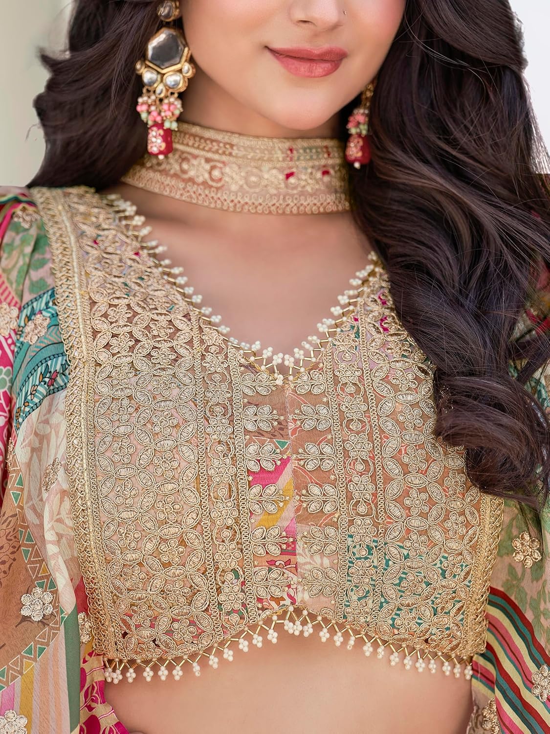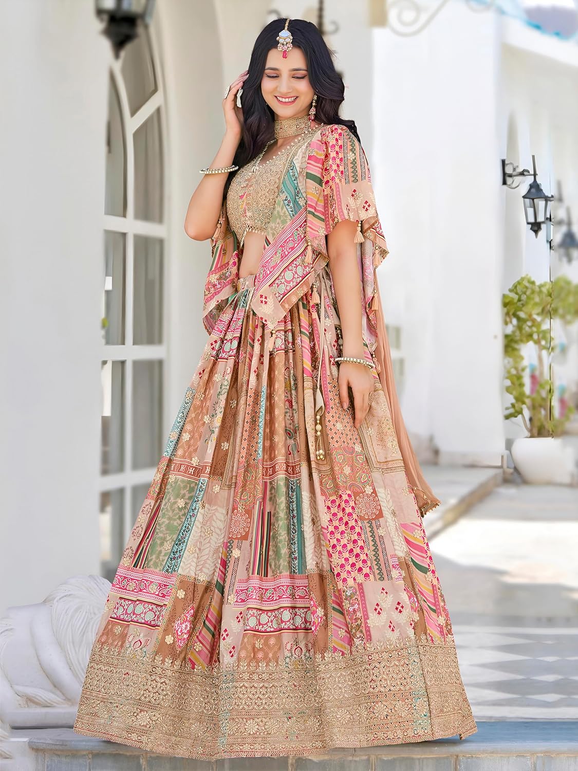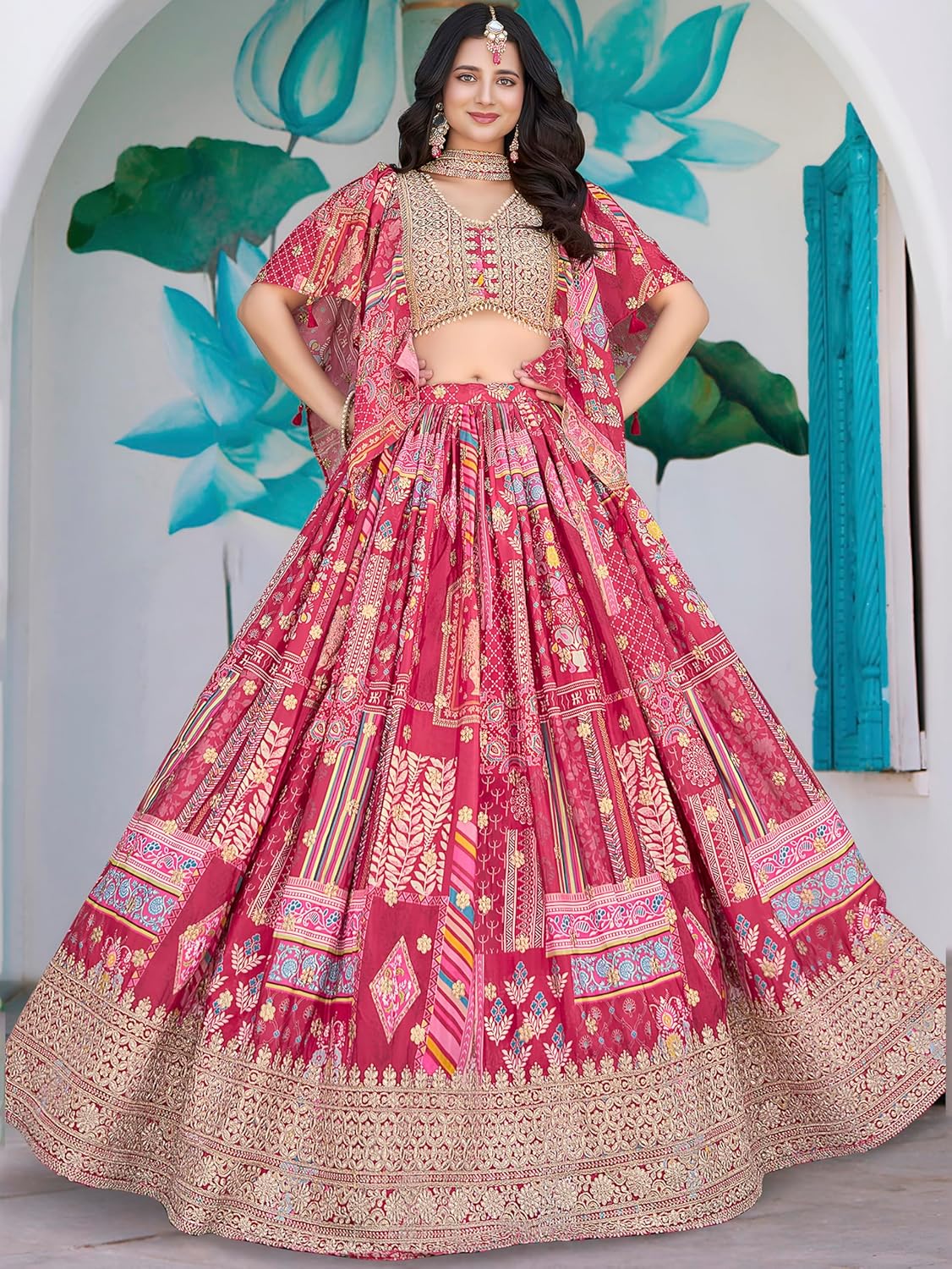 AG Clothing Women’s Chinnon Silk Semi Stitched Lehenga Choli with Dupatta | Digital Print With Sequin Dori Embroidery Pattern | Traditional, Wedding, Ethnic Wear Lehenga