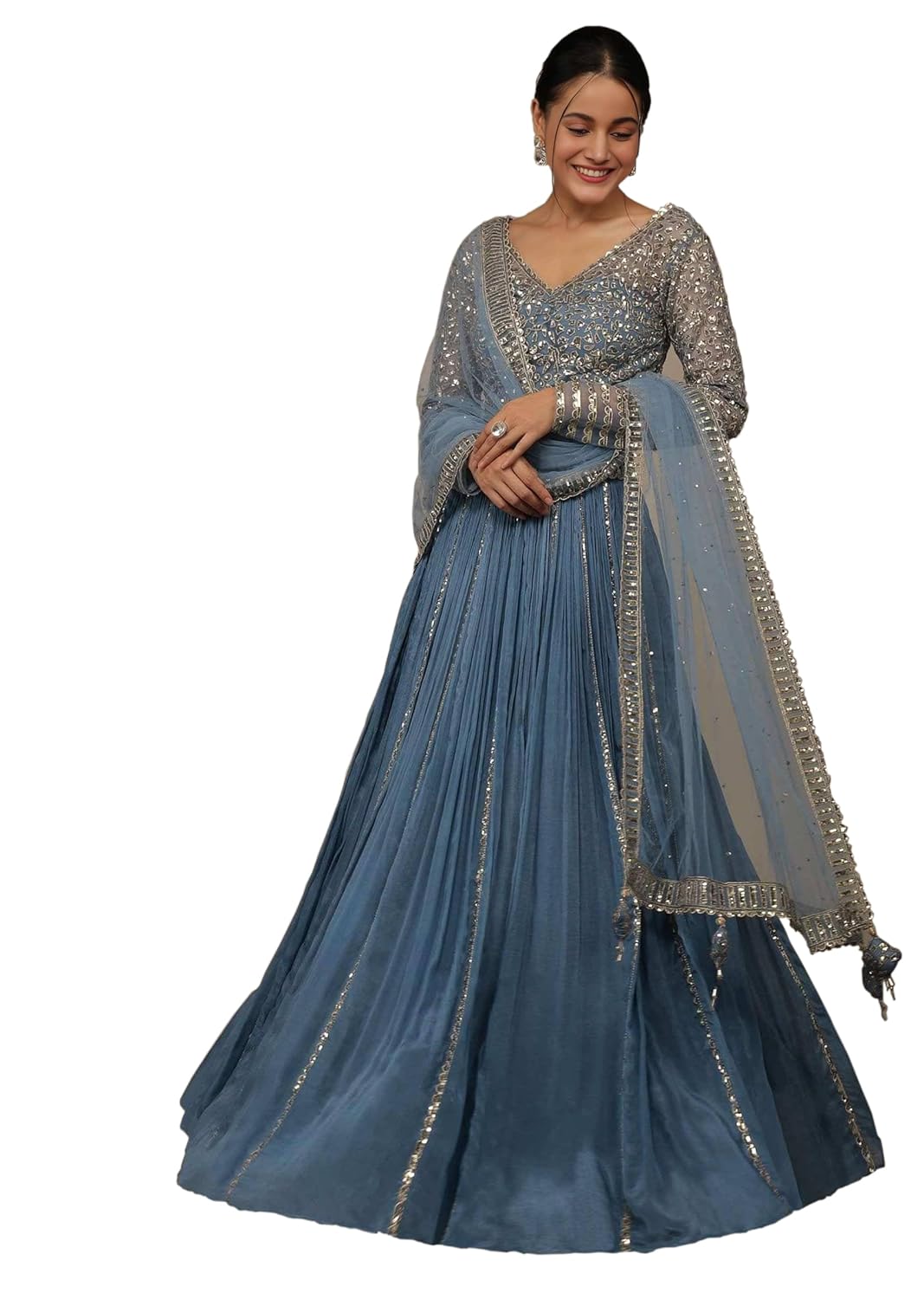 Elevate your festive and wedding attire with this exquisite semi-stitched lehenga choli set. The ensemble features heavy sequined embroidery work that adds a touch of glamour and sophistication to your look. Crafted from soft silk blend fabric, this lehenga set ensures comfort throughout your special occasions. The set includes an unstitched choli (blouse) and a matching dupatta, allowing you to customise the fit according to your preferences. Perfect for weddings, festivals, and grand celebrations, this free-size lehenga choli set combines traditional craftsmanship with contemporary styling. The intricate embroidery details and premium fabric quality make this outfit a stunning choice for those who appreciate both style and comfort in their ethnic wear. The versatile design ensures you stand out at any celebration whilst maintaining elegance and grace.