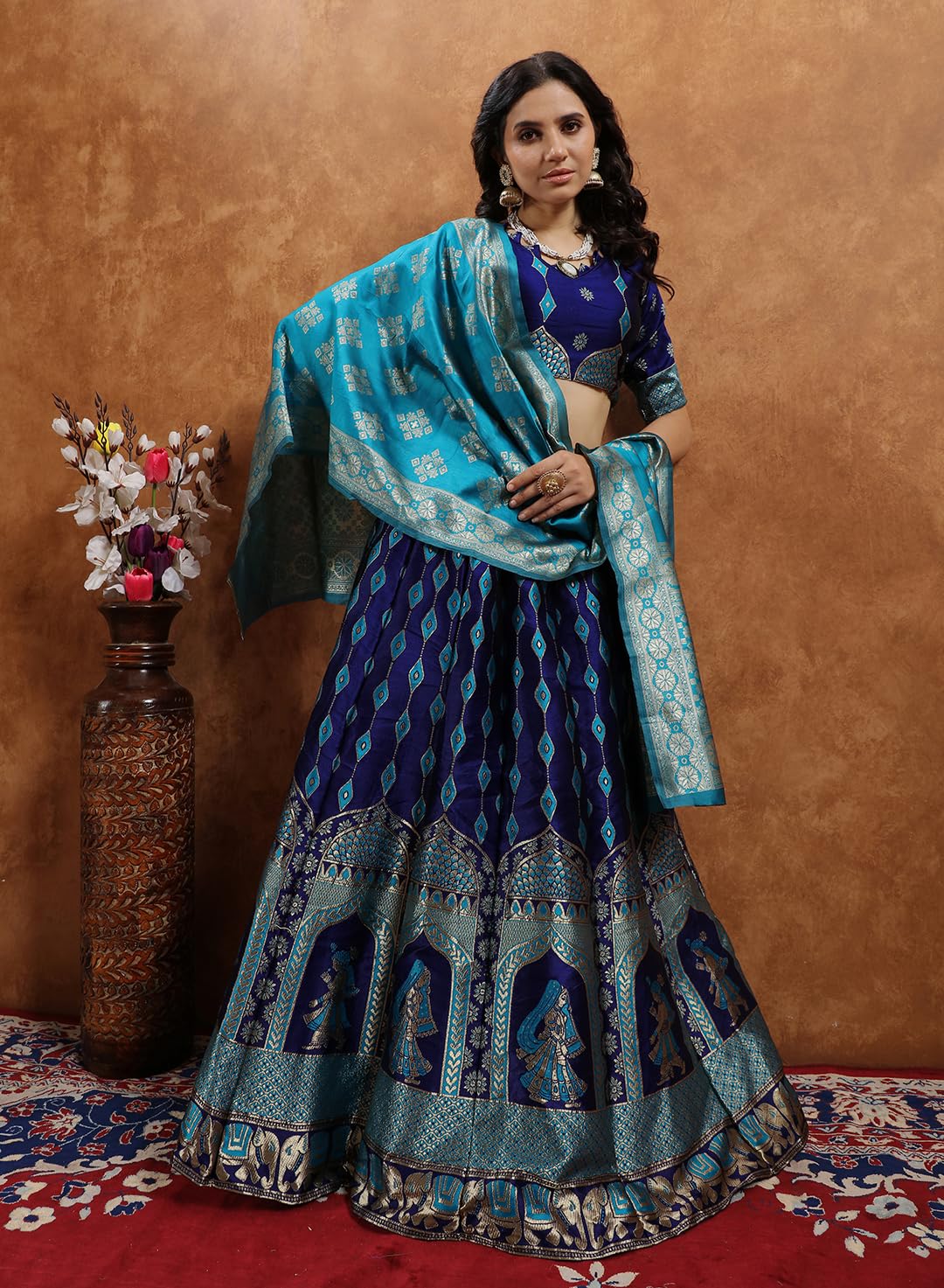 Lovely Embroidered Pattern Crafted with a beautiful and eye-catching embroidered design, the Cute Fellow Women’s Embroidered Semi-stitched Lehenga, Choli, and Dupatta Set adds charm to your festive look. So, you can wear this set for weddings, festivals, and for other functions. Attractive Look Designed with a round neck and long sleeves, this set adds a sophisticated and charming touch to your appearance. Manageable and Comfortable As this set is made from net, it is breathable and lets you manage it with ease. Also, it has a flowy look that sits perfectly for getting beautiful pictures clicked during functions. Semi-stitched Design As this set is semi-stitched, you can get it stitched completely as per your size and comfort. So, you can feel snug throughout the day and enjoy the festivities. * Bottomwear *(Lehangha):- ‘Fabric’ : Art Silk. ‘Print or Pattern Type’ : Zari. ‘Sizes’ : Lehenga Waist Size : 38 inch, Lehenga Length Size: 41 inch. ‘Length’ : 3.50 Miter. Waid : 44″ inch. ‘Lehenga’ : -Solid With Woven. ‘Type’ : Un-stitched. ‘Clothing filling’ : : Litchi Silk With Smuth,Soft And Shine Base. * Topwear *(Choli/Blouse):- ‘Fabric’ : Art Silk. ‘Print or Pattern Type’ : Zari. ‘Sizes’ : Blouse Waist And Chest Size : You Stichd Any Pattern And Any Size Blouse. ‘Length’ : 0.90 Miter. Waid : 44″ inch. ‘Blouse’ : -Solid With Woven. ‘Type’ : Un-stitched. ‘Clothing filling’ : Litchi Silk With Smuth,Soft And Shine Base. * Dupatta *(Chunni) :- ‘Fabric’ : Art Silk. ‘Print or Pattern Type’ : Zari. ‘Sizes’ : Waid : 44″ inch. ‘Length’ : 2.25 Miter*. ‘Dupatta’ : -Solid Woven Fancy Border. ‘Clothing filling’ : Litchi Silk With Smuth,Soft And Shine Base.