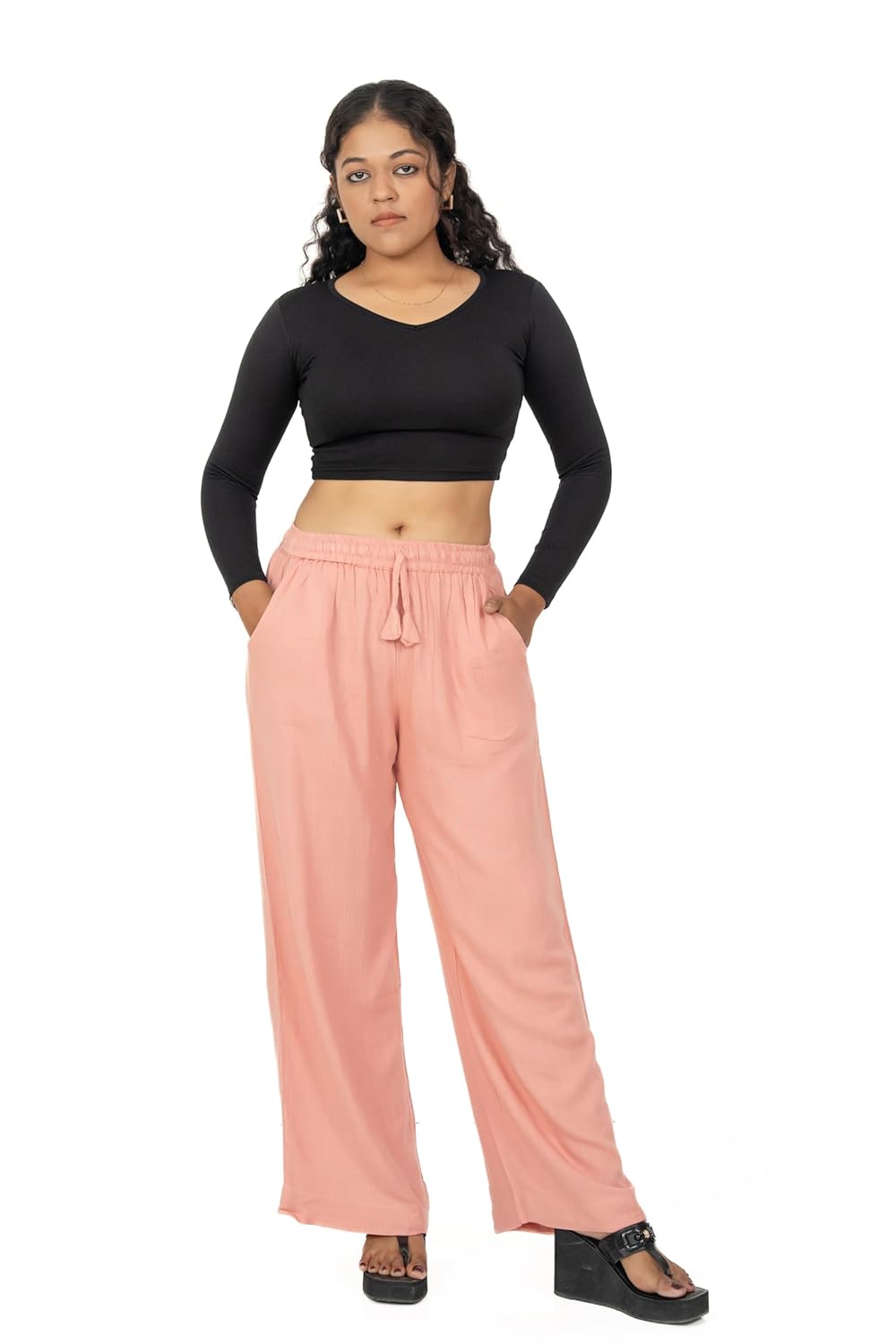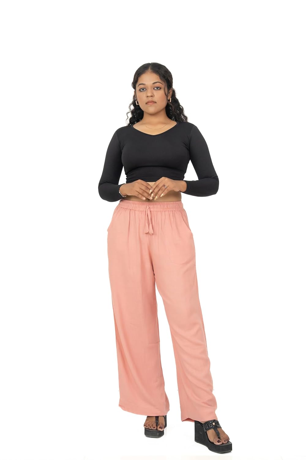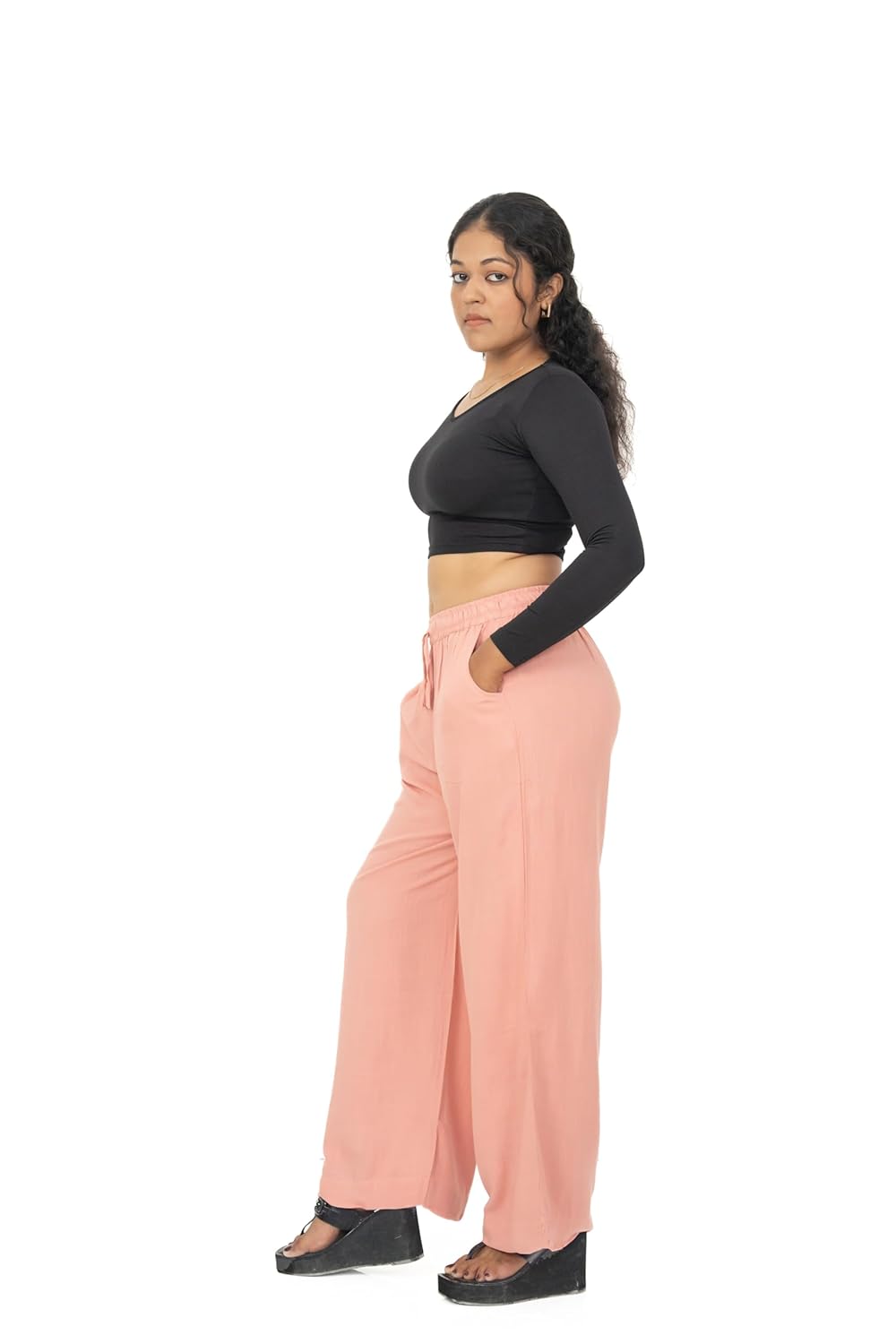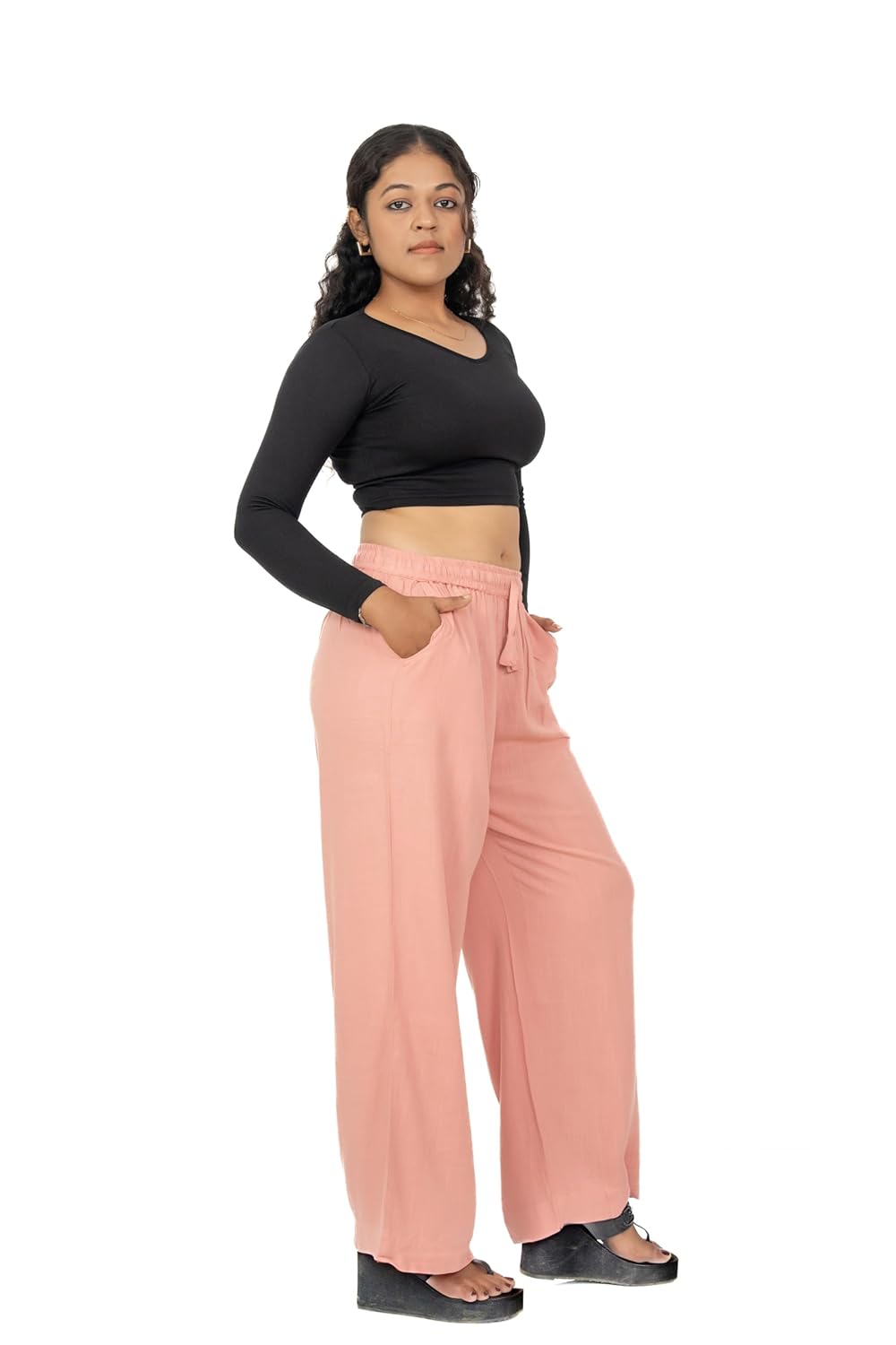 Designed for Comfort, Crafted for Everyday Style Our Women’s Linen Flared Palazzo Pants are thoughtfully designed to offer effortless comfort and timeless style for modern women. Made from breathable linen fabric, these palazzo pants allow proper airflow, helping you stay cool and comfortable throughout the day. Whether you are heading to work, stepping out for a casual outing, or spending long hours on the move, these trousers are created to support your daily routine with ease. The high-waist elastic waistband with an adjustable drawstring ensures a secure yet flexible fit, providing comfort without tightness. The straight-fit silhouette delivers a clean and balanced look that complements different body shapes while allowing unrestricted movement. Designed with inclusivity in mind, these palazzo pants are available in sizes ranging from L to 5XL, making them a reliable choice for women seeking both comfort and confidence in plus-size bottom wear. Versatile in styling, these linen palazzo pants pair effortlessly with kurtis, shirts, tunics, and casual tops. Their simple and refined design makes them suitable for both professional environments and relaxed occasions. The breathable fabric and relaxed fit make them especially ideal for warm weather, long workdays, or travel. Built for everyday practicality, these trousers are easy to maintain and designed to retain their shape and softness even after multiple washes. The thoughtful combination of breathable linen, adjustable waist support, and a flattering straight fit makes these palazzo pants a wardrobe essential for women who value comfort, durability, and understated elegance. Elevate your everyday wardrobe with these Women’s Linen Palazzo Pants and enjoy a perfect balance of comfort, fit, and effortless style—designed to move with you, wherever your day takes you.