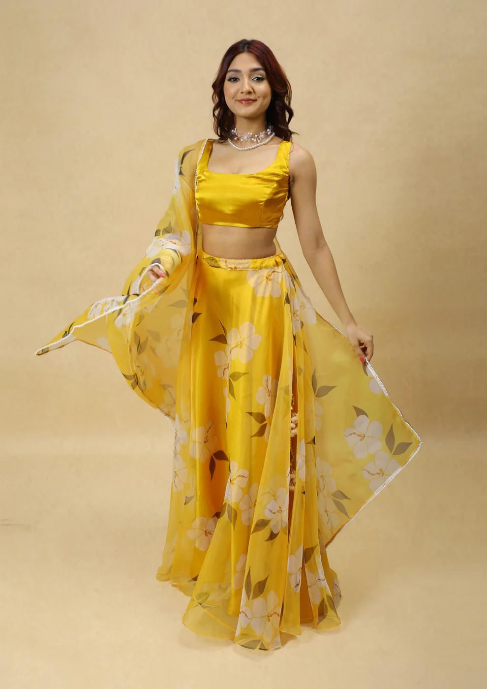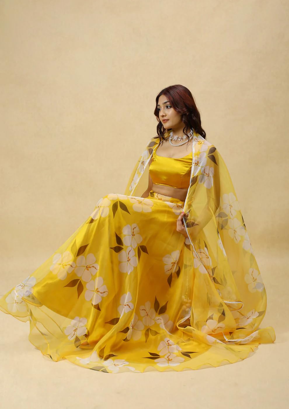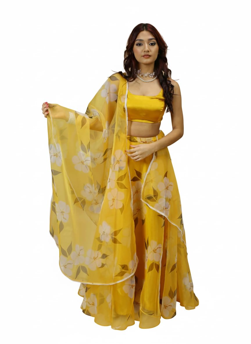 यह खूबसूरत पीच फ्लोरल ऑर्गेन्ज़ा लेहंगा चोली हर फेस्टिव और स्पेशल ओकेज़न के लिए एक परफेक्ट आउटफिट है। प्रीमियम ऑर्गेन्ज़ा फैब्रिक पर बने बड़े और आकर्षक फ्लोरल प्रिंट लेहंगे को बेहद ग्रेसफुल और एलीगेंट लुक देते हैं। सॉलिड क्रॉप-टॉप और मैचिंग फ्लोई दुपट्टा पूरे सेट को स्टाइलिश और मॉडर्न टच प्रदान करता है। हल्का, आरामदायक और हर उम्र की महिलाओं के लिए बेस्ट चॉइस।