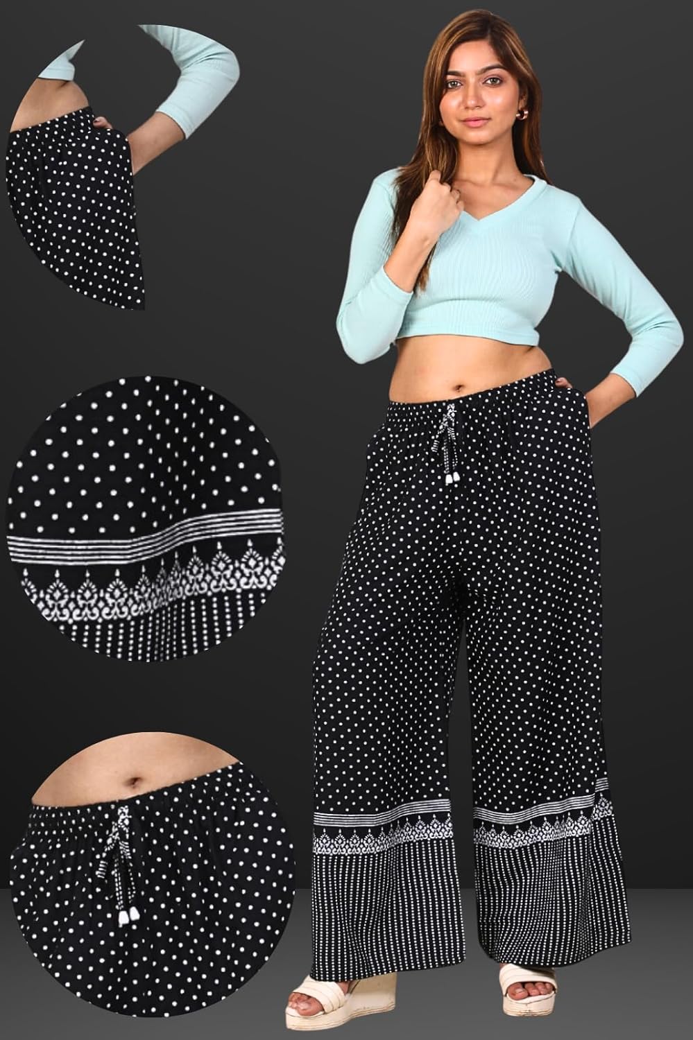 Embrace the comfort and style of this unique Women’s Rayon Printed Pocket Palazzo. Crafted from soft and breathable rayon fabric, this stylish palazzo offers a free size fit, making it a versatile choice for any body type. The vibrant printed design adds a touch of elegance, while the convenient side pockets provide functionality. Perfect for casual outings, lounging at home, or pairing with a kurta for a chic ethnic look. Experience the ultimate fusion of fashion and comfort with this must-have rayon palazzo in your wardrobe.