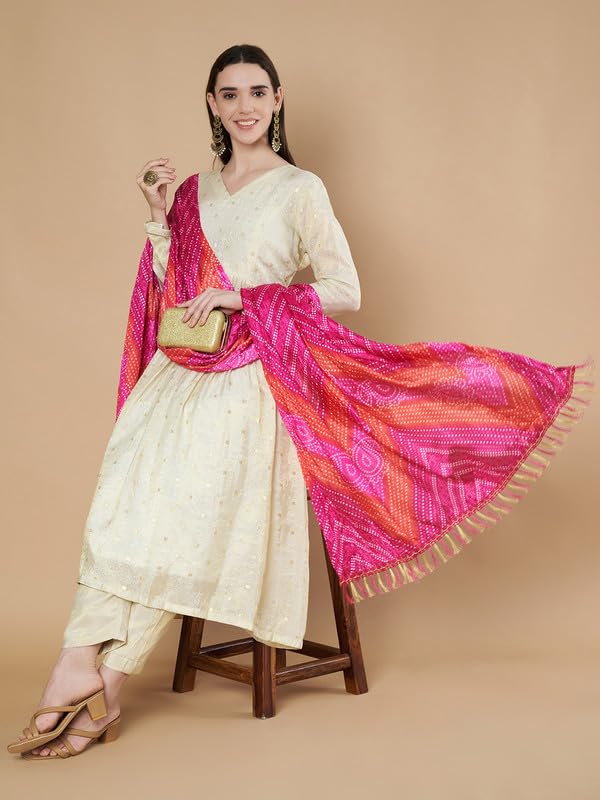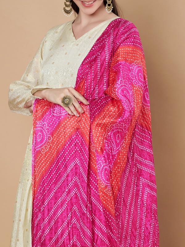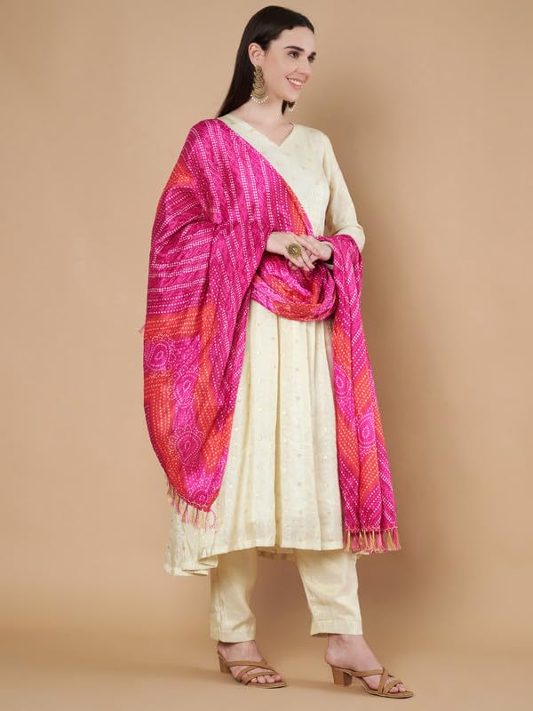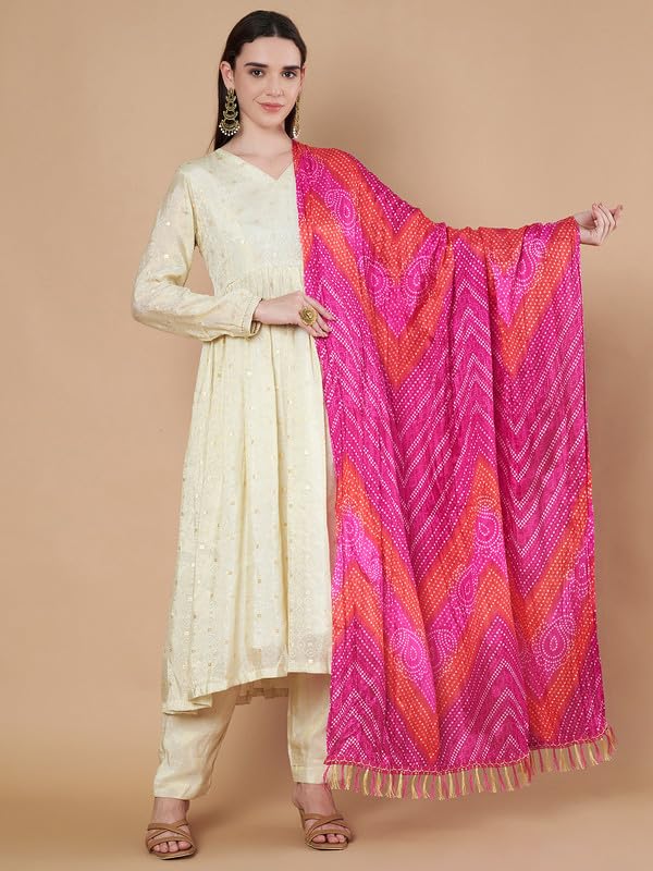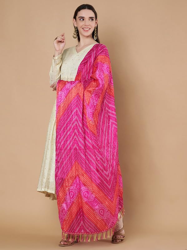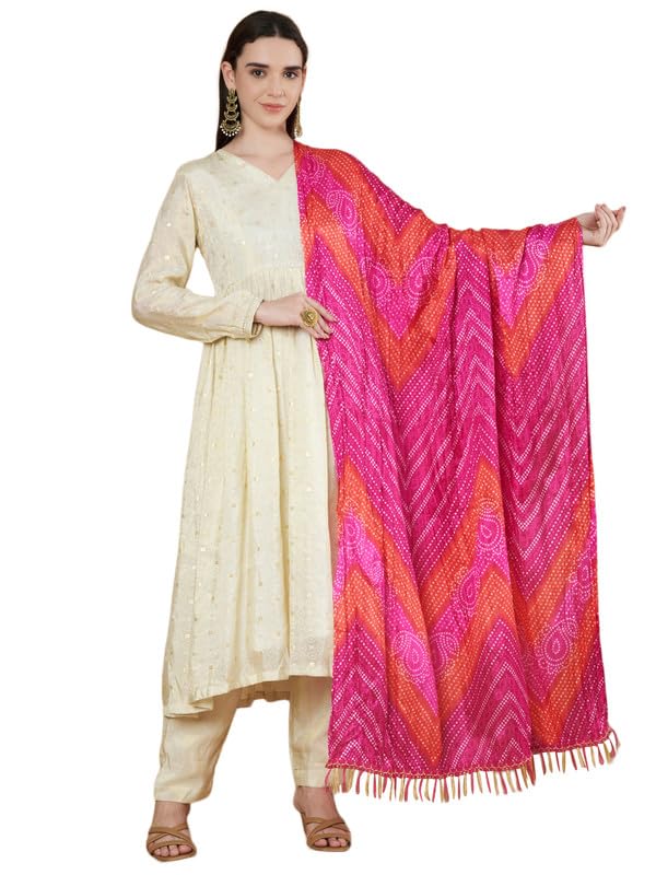Women’s Silk Blend Bandhani Print Dupatta with 2.20 Meters | Women’s cotton printed dupatta with tassels