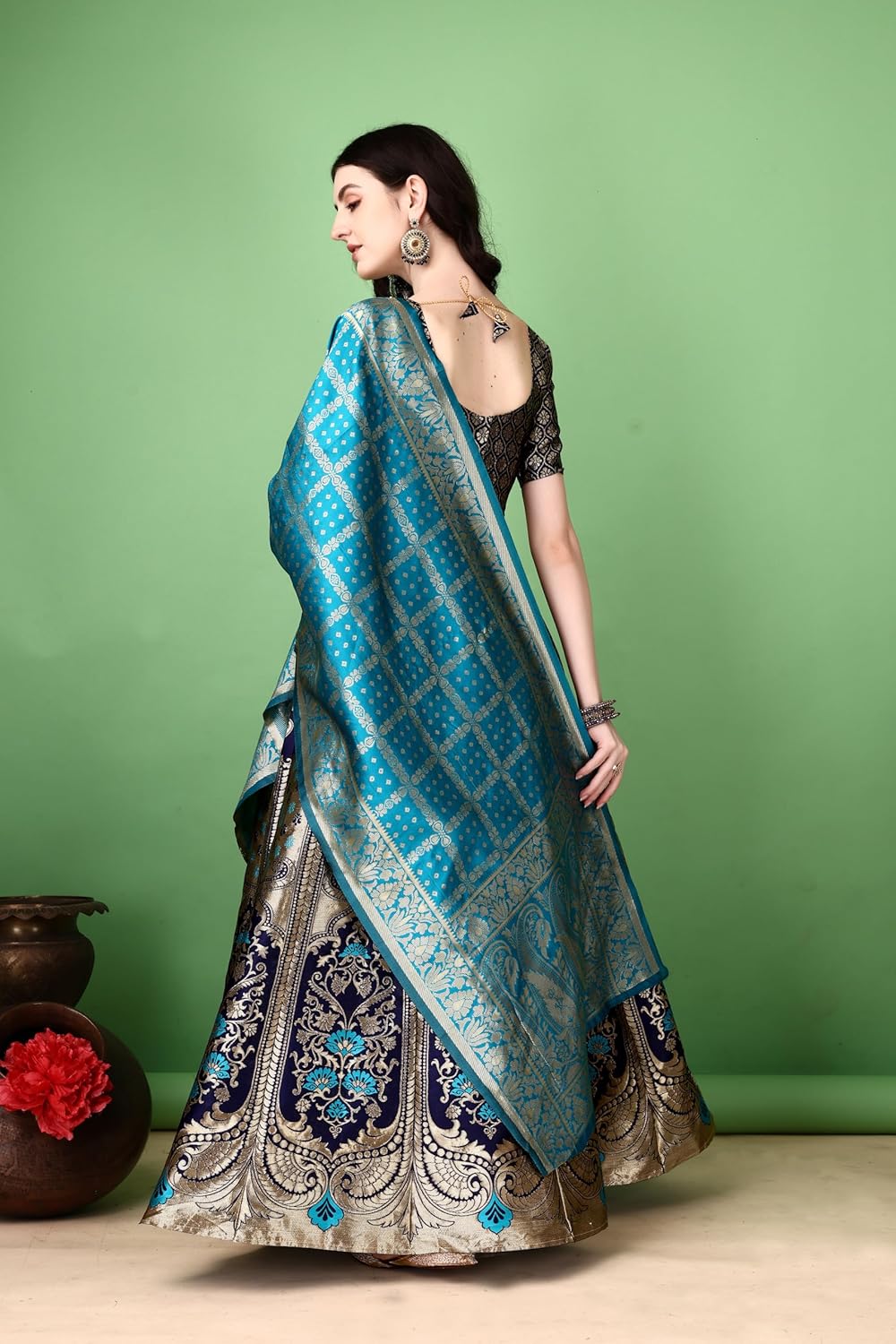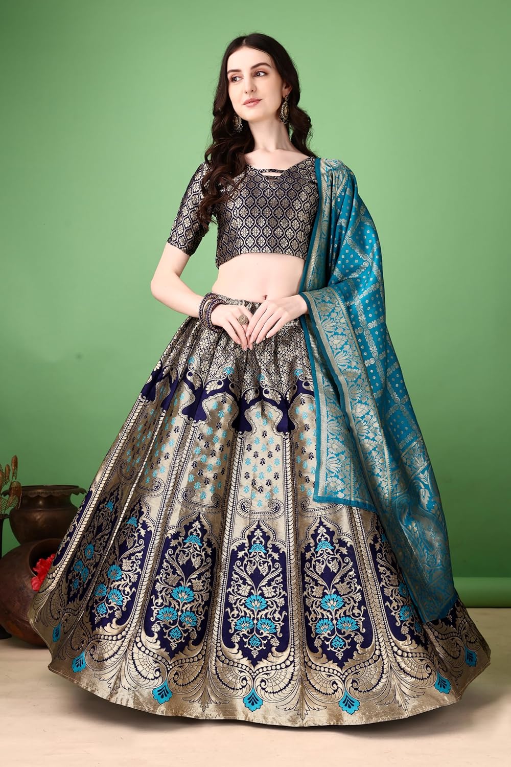 Lovely Pattern Crafted with a beautiful and eye-catching design, the Women’s Semi-stitched Lehenga, Choli, and Dupatta Set adds charm to your festive look. lehenga fabric :- art silk (jacquard) lehenga:- stitched blouse:- un-stitched (1 meter) Lehenga Waist Size:-40 Lehenga Length Size:-42 Duppatta Length Size:-2.2 Women Unstitched Lehenga Choli. Designed to exude grace and charm, this exquisite piece is perfect for weddings, festivals, and special occasions. Crafted from premium quality fabric, it offers both comfort and durability, ensuring you look your best while feeling at ease.Complete Set: This traditional outfit includes a matching dupatta, enhancing the overall traditional charm and completing the look. This flexibility ensures you have a one-of-a-kind garment that truly represents your personal style.Invest in this timeless piece of ethnic wear and embrace the beauty and elegance of traditional fashion. Our Women Unstitched Lehenga Choli is not just a garment; it’s a celebration of culture, craftsmanship, and individuality. Unstitched design allows for a personalized fit to your measurements.Perfect for weddings, festivals, and special events.