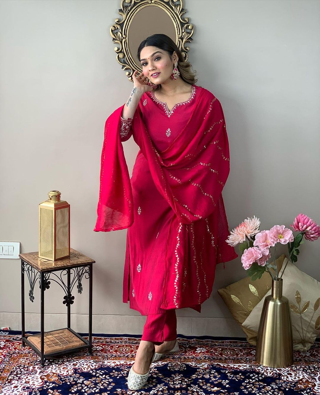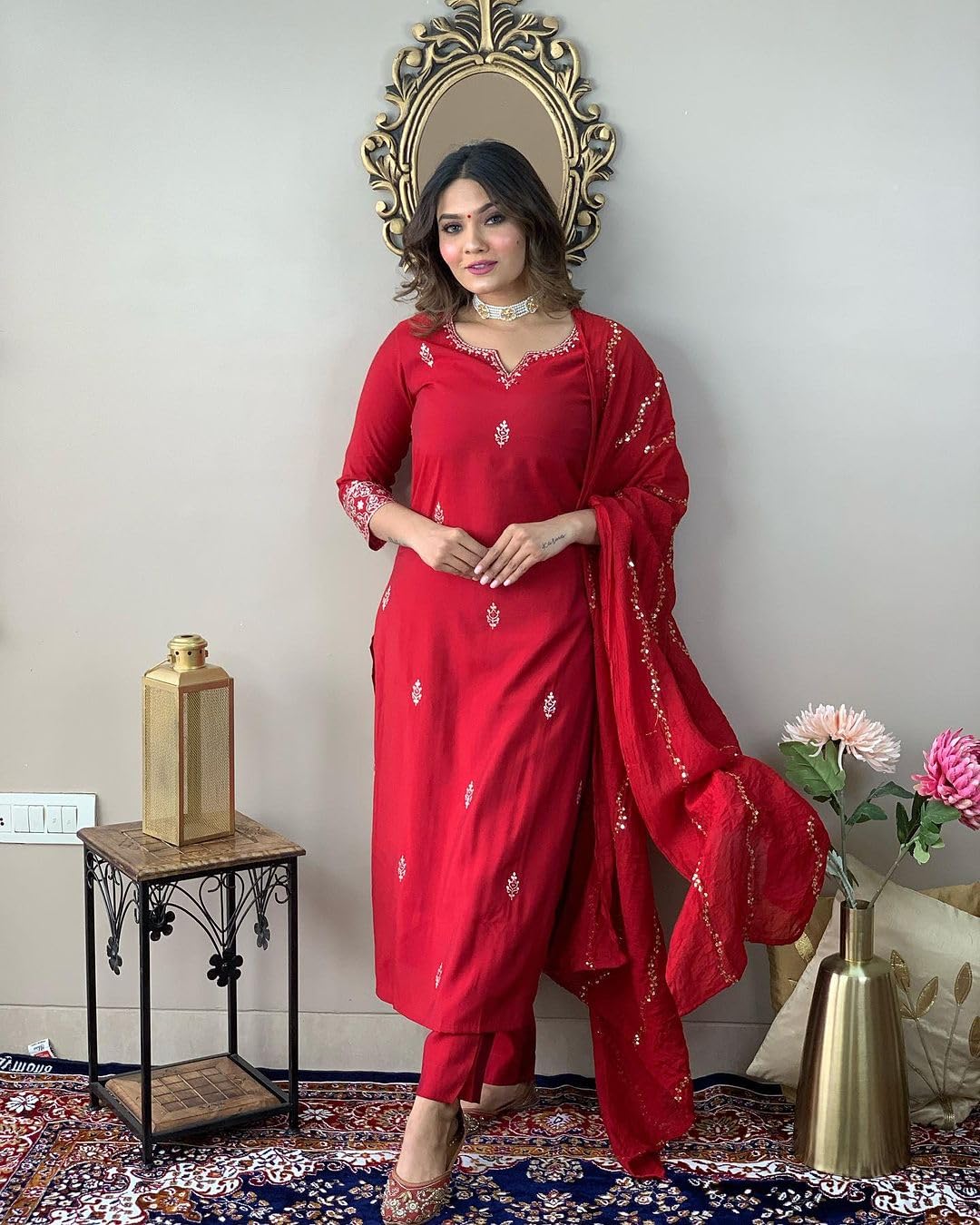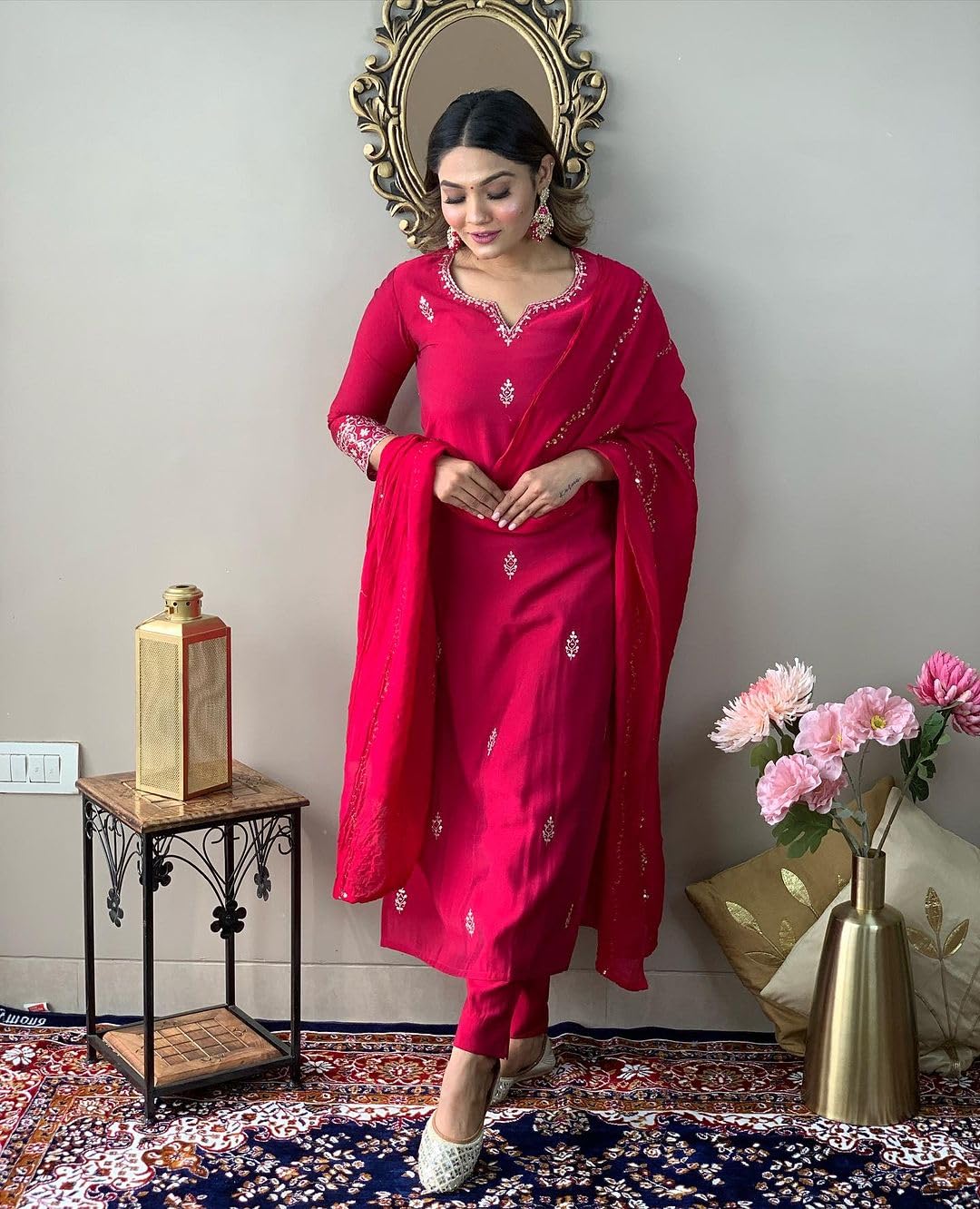 The quality of this suit is just wow. It gives very perfect look. Fitting, color and quality of fabric is amazing. Good for small functions and kitty parties.