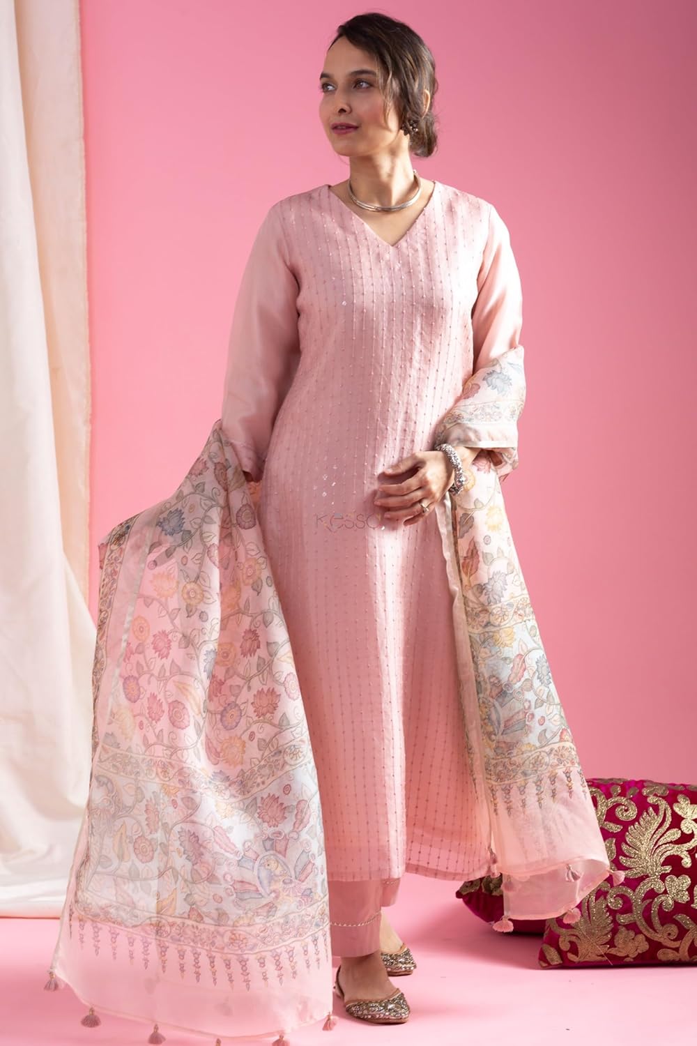 Generic Name : Women Viscose Chanderi Fabric Straight Kurta, Pant and Dupatta Set | Kurta Set For Women
