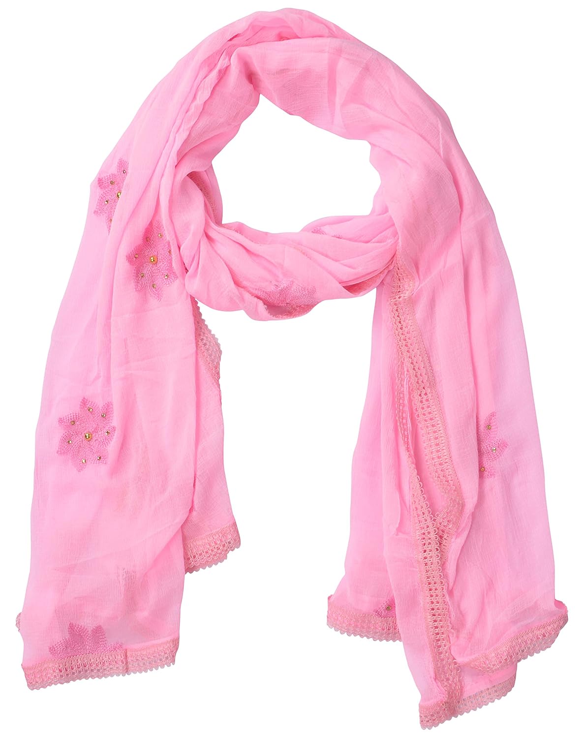 YOUTHQUAKE Flower Embroidered Diamond Work Chiffon Dupatta for Womens & Girls With 4 Side Lace