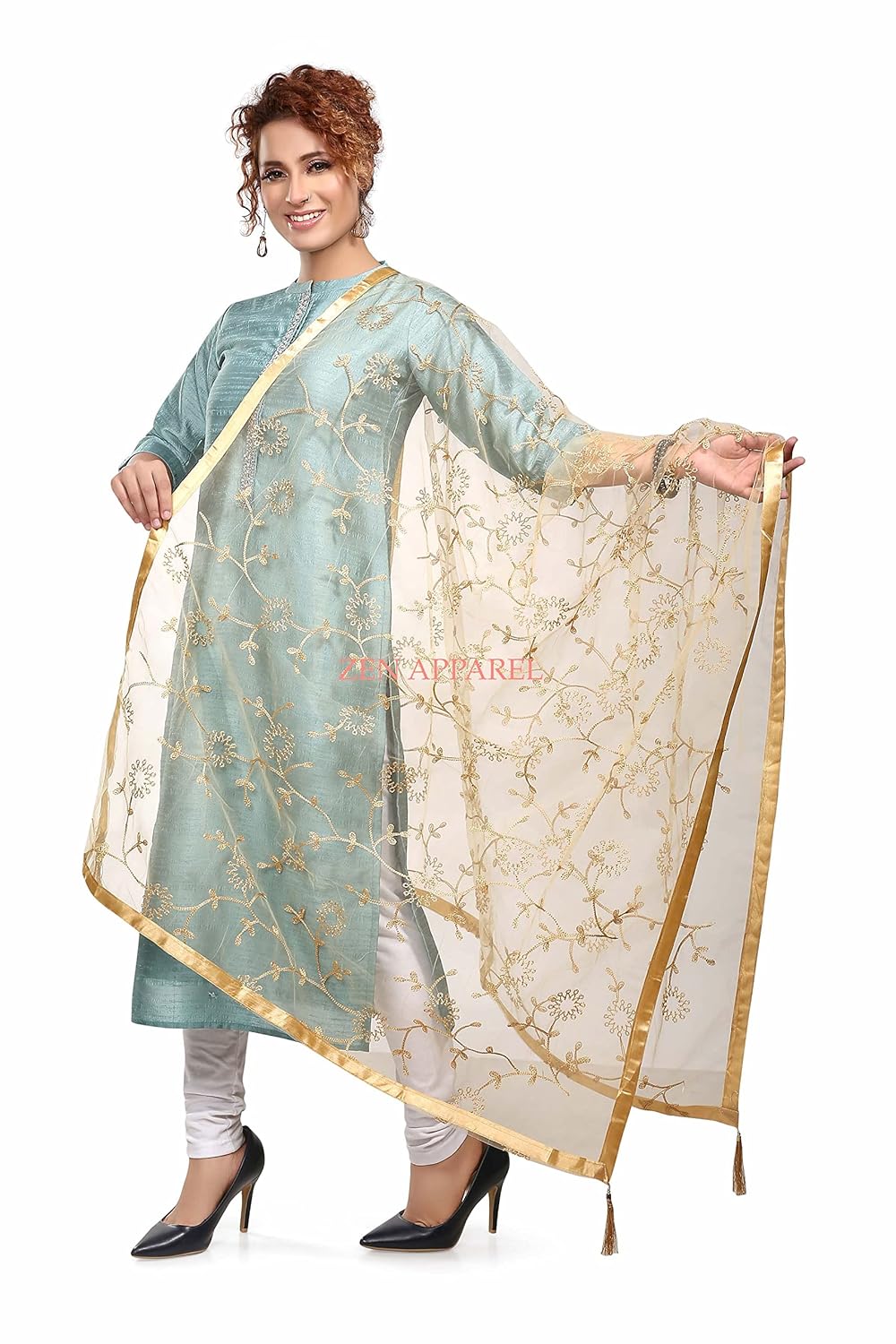 The Zen Apparel Net Embroidered Golden Dupatta is a showstopper that will take your style to the next level. This exquisite accessory is crafted from delicate net fabric that drapes beautifully and feels feather-light on your skin. The intricate golden embroidery adds a touch of luxury and sophistication, making this dupatta an ideal choice for special events and formal gatherings. But don’t be fooled by its elegant appearance, this versatile piece can also be paired with more casual ensembles to instantly elevate your look. With its timeless design and stunning craftsmanship, the Zen Apparel Net Embroidered Golden Dupatta is the epitome of sophistication and the ultimate addition to any wardrobe.