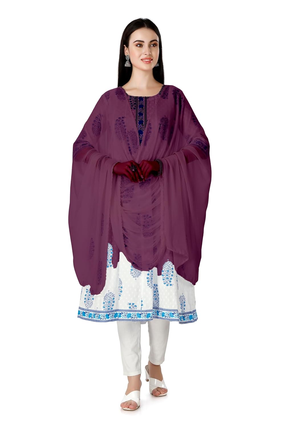 Elevate your style and add a touch of sophistication to any outfit with this exquisite chiffon dupatta. Made from high-quality chiffon fabric, this dupatta has a luxurious drape and a soft, lightweight feel that will make you feel like a queen. Featuring a solid color design, this versatile accessory pairs effortlessly with a wide range of outfits, making it a must-have for any fashion-savvy woman. Whether you’re dressing up for a formal occasion or simply want to add a touch of elegance to your everyday wardrobe, this chiffon dupatta is the perfect choice. Crafted with care and attention to detail, this premium-quality dupatta is designed to last, even with frequent wear. Its soft, breathable fabric is gentle on your skin, while its lightweight design ensures comfort and ease of movement. Whether you’re looking for a beautiful accessory to complete your outfit, or a thoughtful gift for a loved one, this chiffon dupatta is sure to impress. So why wait? Add it to your cart today and experience the perfect blend of style, comfort, and quality! Material: Chiffon Length of Fabric: 2 meters Care Instructions: Normal Hand Wash